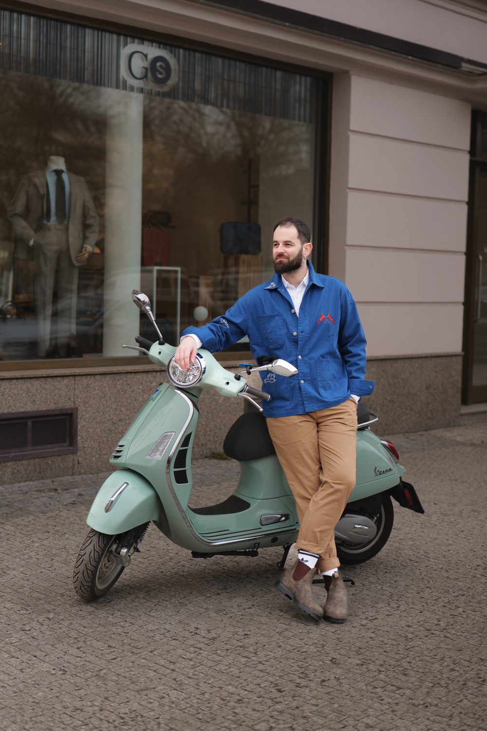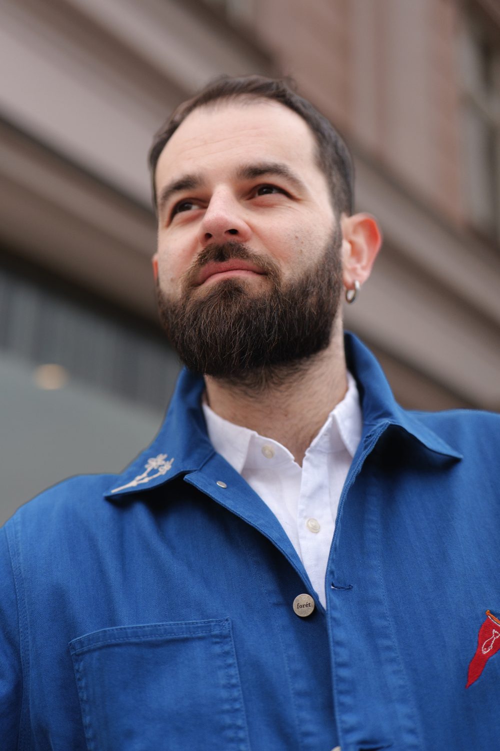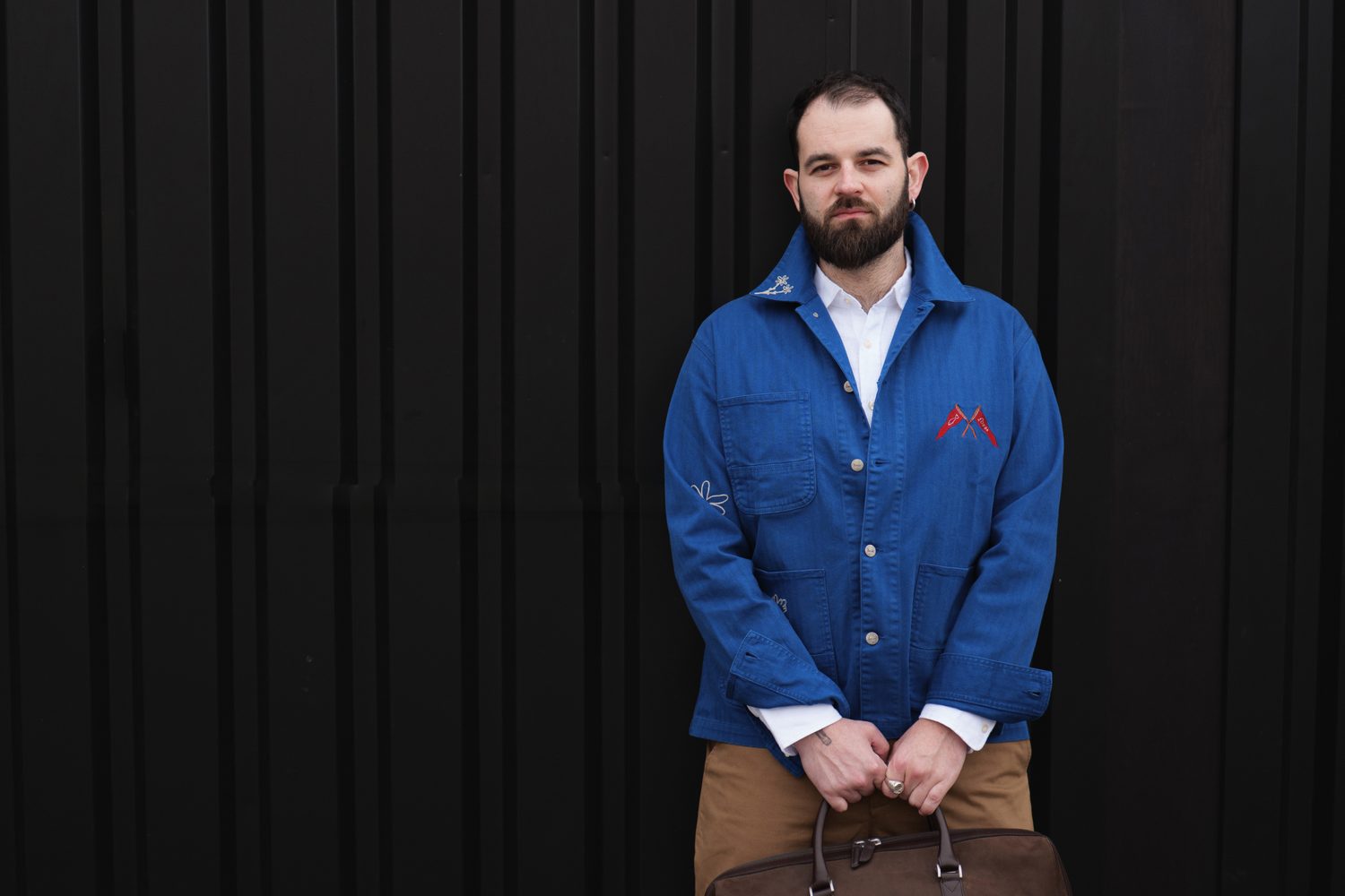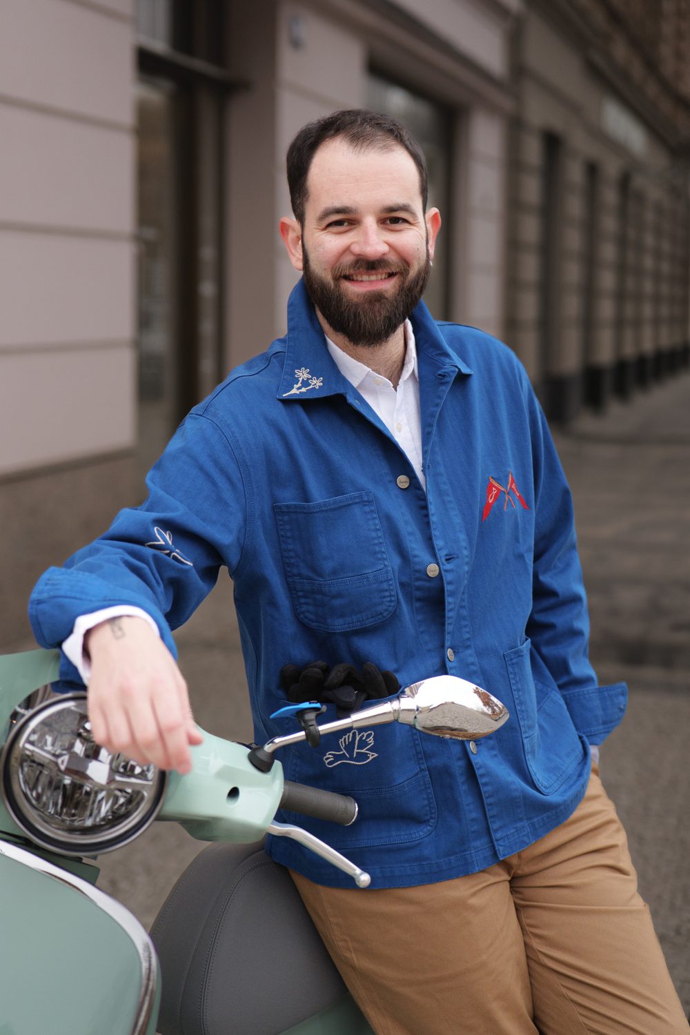 Filip k nám do podcastu přišel ve svém běžném oblečení, které jasně ukazovalo, co je pro něj v módě nejdůležitější – pohodlí. Při naší jemné proměně stylu jsme proto zůstali u stejného základu, jen jsme sáhli po výraznějších a promyšlenějších kouscích. Hlavní roli sehrál sytě modrý overshirt od naší oblíbené dánské značky forét, který definoval celou siluetu a dodal jí strukturu. Doplnili jsme ho čistou, lehkou lněnou košilí od Charles Tyrwhitt a minimalistickými pískovými chinos od Barbour. Outfit jsme zakončili koženými kotníkovými botami od tasmánské značky Blundstone. A kdyby náhodou bylo potřeba na chvíli zmizet a vyčistit si hlavu, přidali jsme ještě víkendovou tašku od Carl Friedrik.