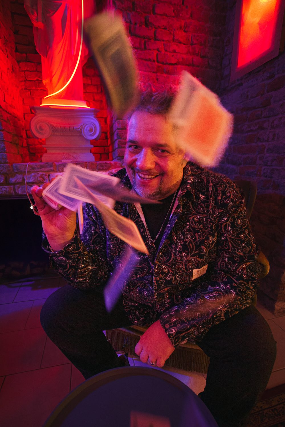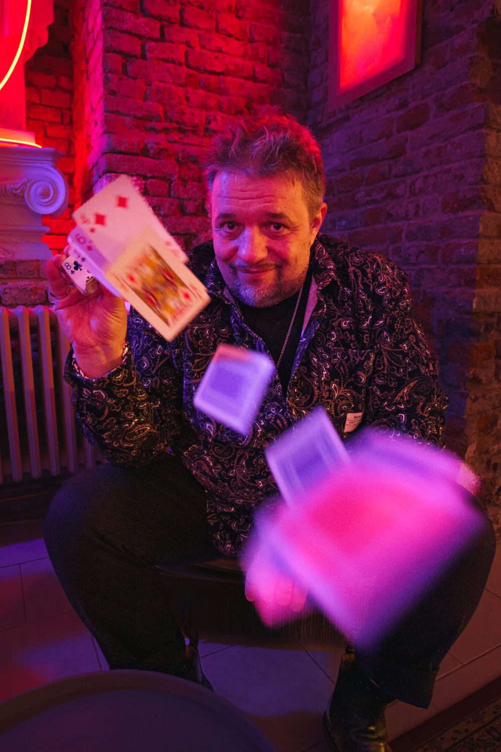 Komerčními. Iluzionisty a tak. Takže teď absolutně jedu v kouzelnících, už několikátý měsíc. Včera jsem si vyzvedával na poště sadu kouzelnických karet. Už sleduju, jak se dělají kouzla. Mám o tom takovouhle spoustu knih. Nejenom o tom, jak se ta kouzla provádějí, ale i o odvádění pozornosti, o psychologii kouzlení a tak. Ale říkám si, že je to příliš velký, než abych to dotáhl do nějakého uspokojivého konce. Ale v tom jsem teď ponořený.
