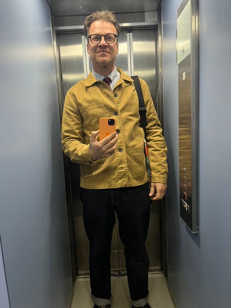 V současnosti se ale zase vracím víc k workwearu: pracovní košile a denim/šambré overshirty v klasickém francouzském duchu, hickory košile od původních brandů, džíny vždycky v selvedge kvalitě a nyní ve střihu čtyřicátých let (často doplněny o šle), většinou z Japonska, Švédska nebo Francie. Nebo se z workwear přeladím víc na Ivy League / preppy styl se všemi tradičními kusy a prvky – jsem na to dost háklivý. Pokud vše není, jak má, necítím se v tom dobře.