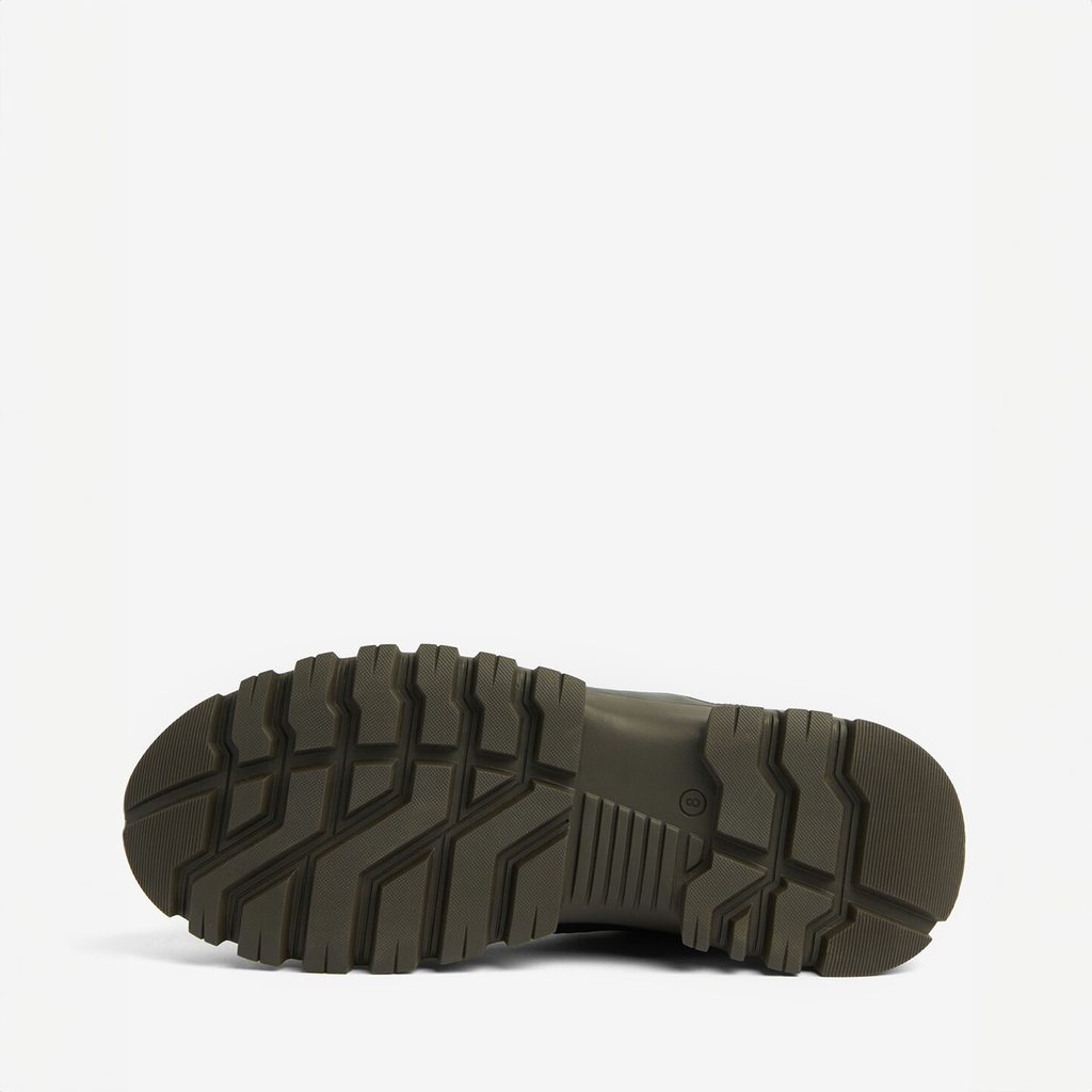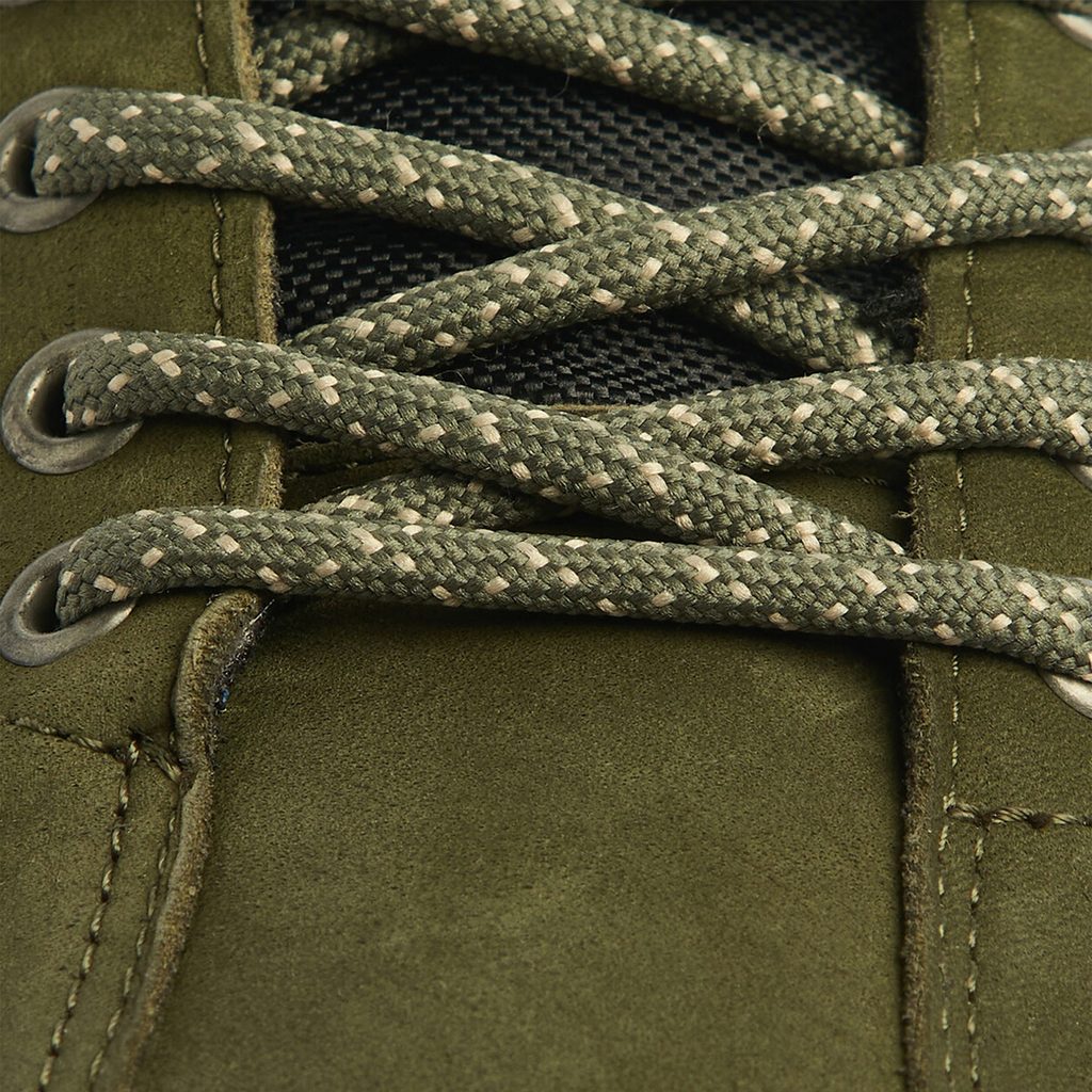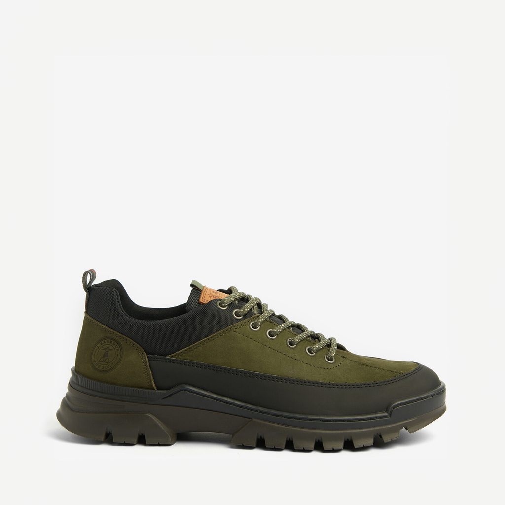 Když se řekne pohorky, nemusí na mysl okamžitě přijít nevkus. Tyhle boty na chození jsou nejen oku lahodící – převaha olivové barvy na těle boty s kontrastně zrnitými tkaničkami – ale především zcela účelné. Vyrobeny jsou ze směsi kůže, nylonu a polyesteru, po přední části obvodu mají gumový „nárazník” usnadňující čištění. Vysoká gumová podrážka vás pak pronese skoro jakýmkoli terénem.
