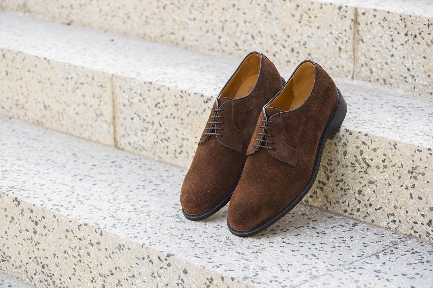 Rámové derby s otevřeným směřováním v tmavě hnědém semišovém provedení. Neformální a nebývale praktické boty - semiš je totiž navzdory mnoha pověrám velmi odolný a téměř bezúdržbový, stačí mu troška impregnace. Ve Španělsku vyrábí Berwick 1707.
