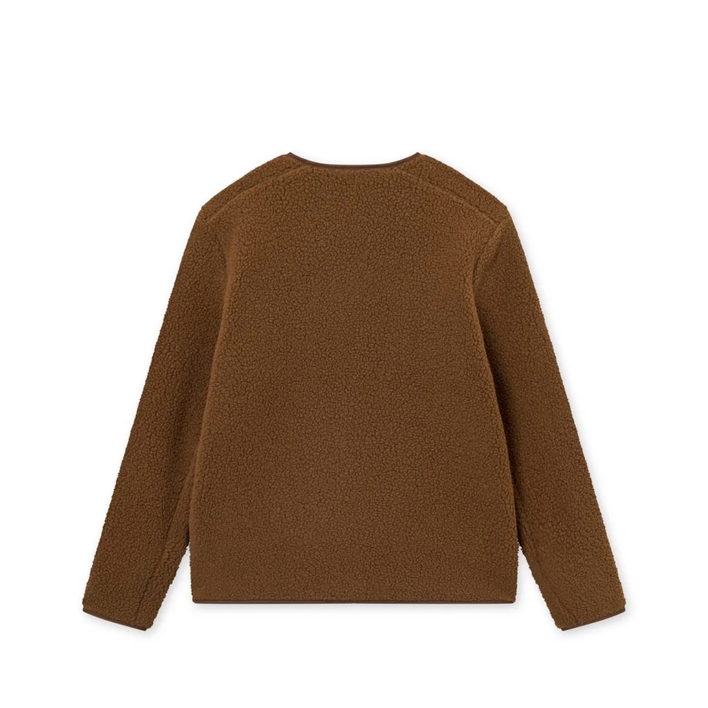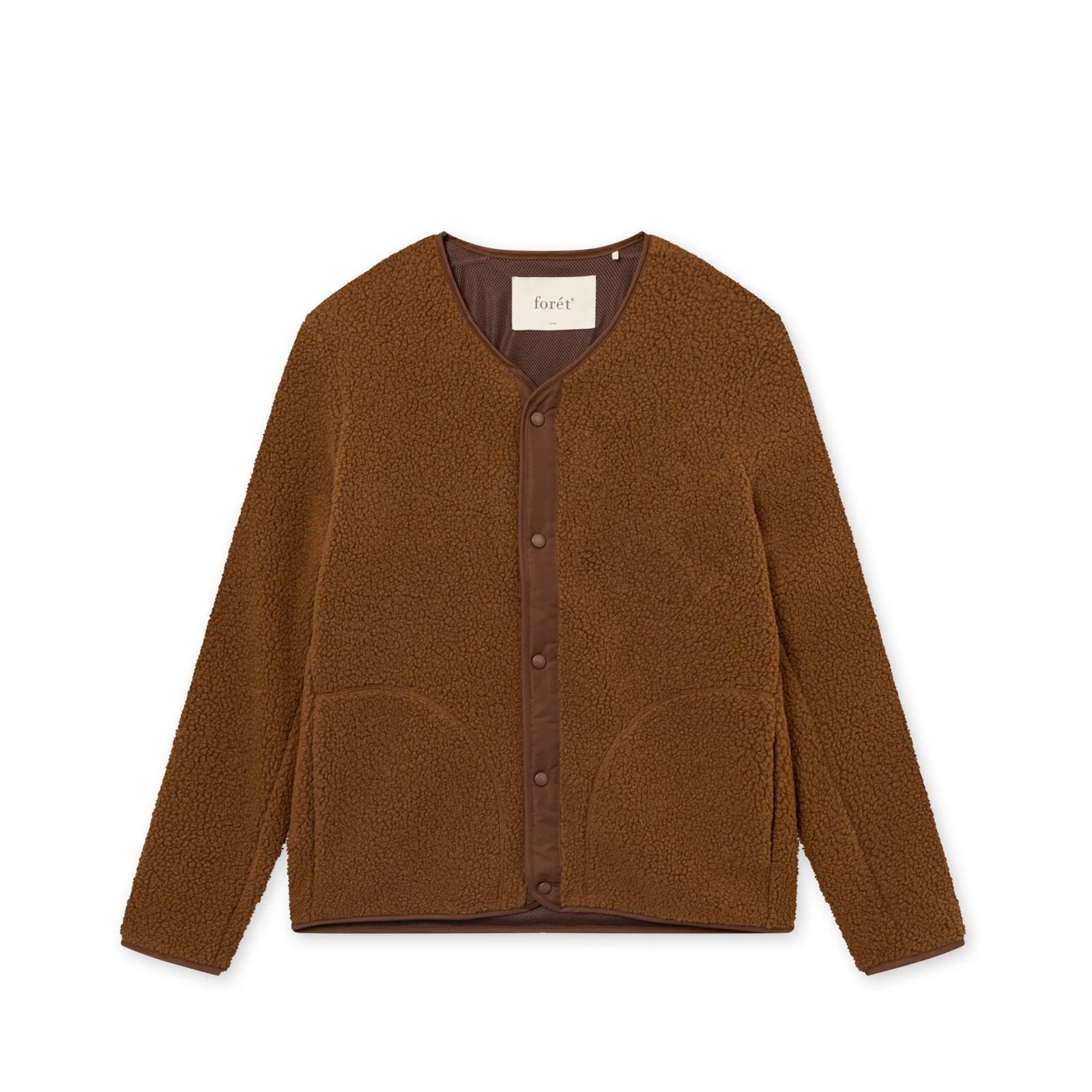 S mírným odklonem od tradiční bílé barvy šerpovských a fleecových bund přichází – jako vždy šetrně – dánská značka forét. Středně lehká, volněji střižená bunda se zapínáním na knoflíky je pořád relativně teplá díky svému materiálu – směsi vlny s polyesterem.