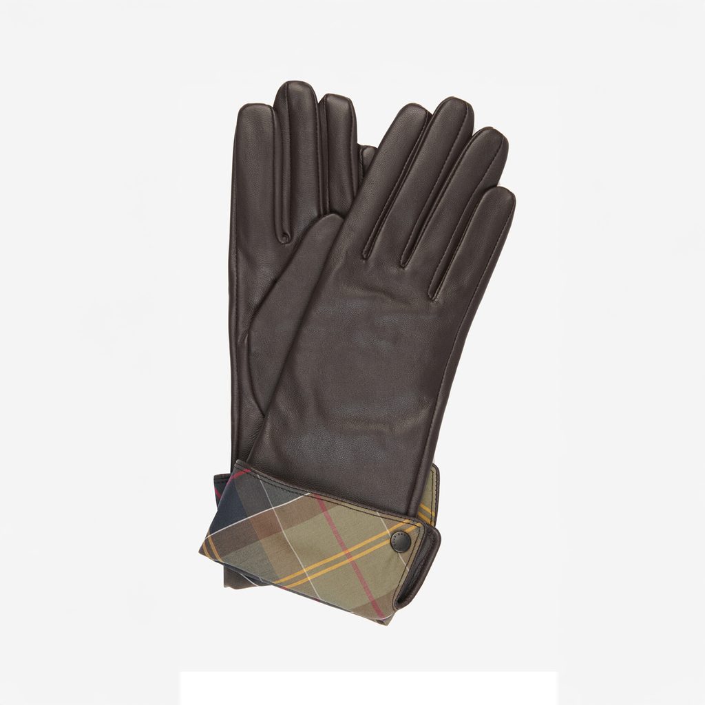 Dámské rukavice z kvalitní jemné kůže, které jsou na zápěstí navíc doplněny tradičním tartanem, který je na vnější straně naskrz spojen dekorativní patentkou.