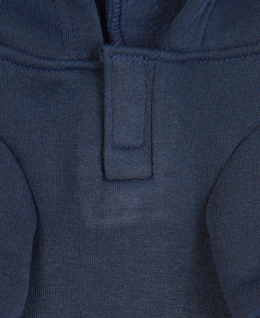 Je váš pes spíš pohodář? Má rád dobrý leháro a žvanec? Kupte mu místo oblečku mikinu. Decentní, tmavě modrá, s barevnými nášivkami písmen na zádech.