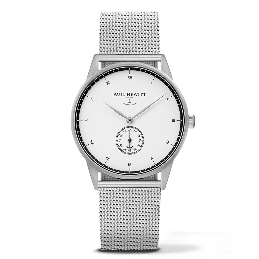 Správné hodinky jsou jako maják v moři. Zub času jim dodává patinu, ale jejich eleganci nezničí. Německé hodinky Paul Hewitt jsou vyumělkované do nejmenších detailů. Jsou designově čisté, mají matné stříbrné pouzdro, bílý ciferník, klasické námořnické detaily (například natahovací korunku s vyraženým logem a kotevní vteřinovku) a pracně zaplétaný kovový řemínek. I díky tomu se hodí pro téměř každou příležitost.