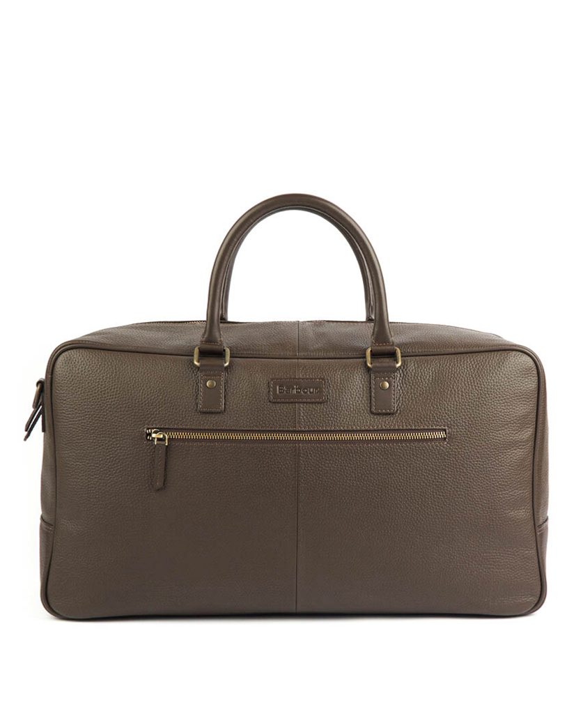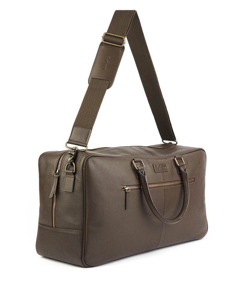Kožená víkendová taška Barbour s transportními uchy, odnímatelným ramenním popruhem a praktickým vnitřním uspořádáním. Limitovaná dárková kolekce.