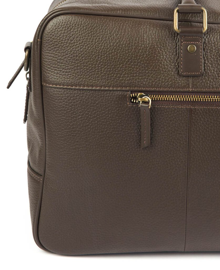 Stylová kožená víkendová taška Barbour Highgate v tmavě hnědém provedení. Má odnímatelný ramenní popruh, stylová a hlavně uživatelsky příjemná transportní ucha, vnější kapsy s uzavíráním na zip a hlavní vnitřní kapsu uzavíratelnou stejným způsobem. Kapacitou bohatě vystačí na (prodloužený) víkendový výlet.