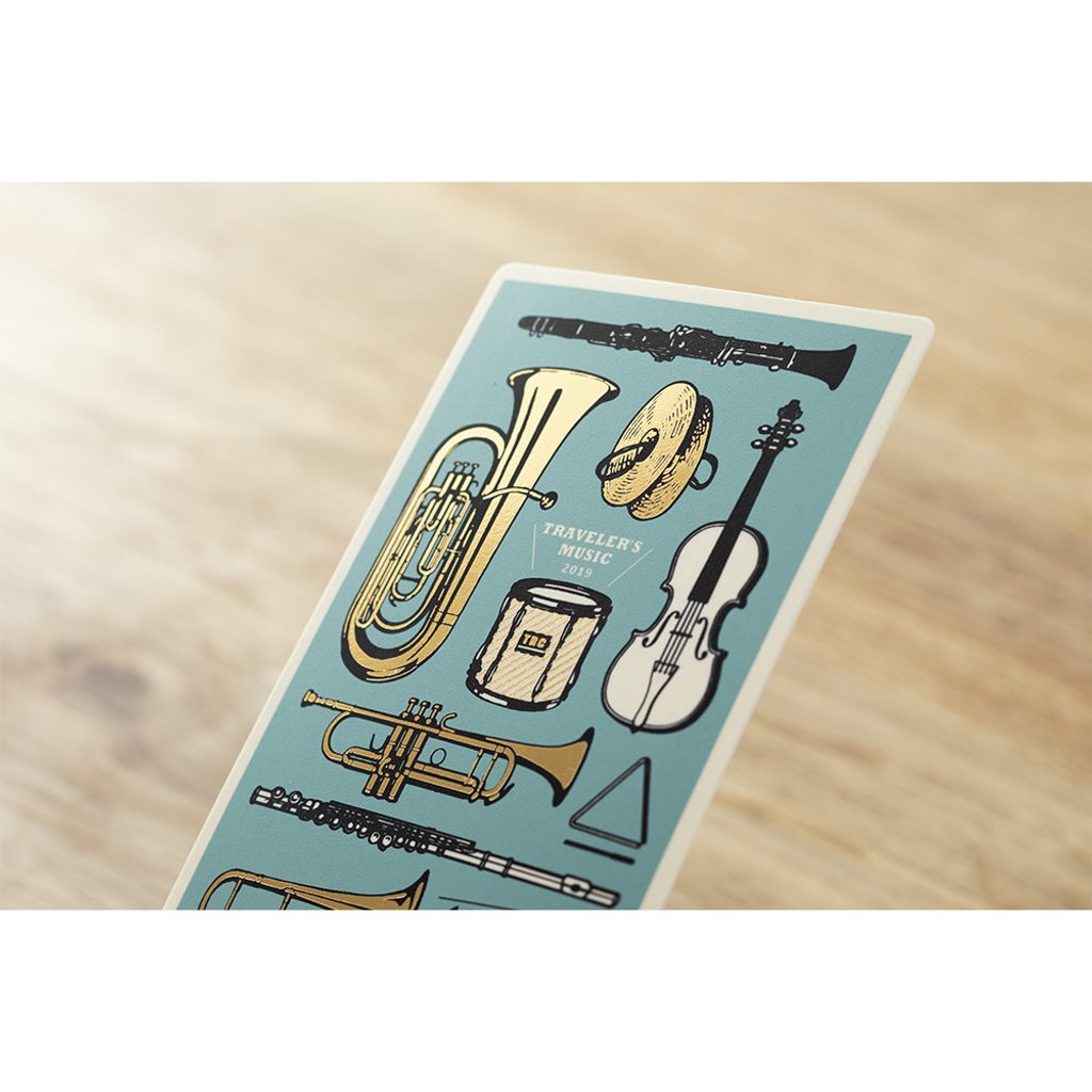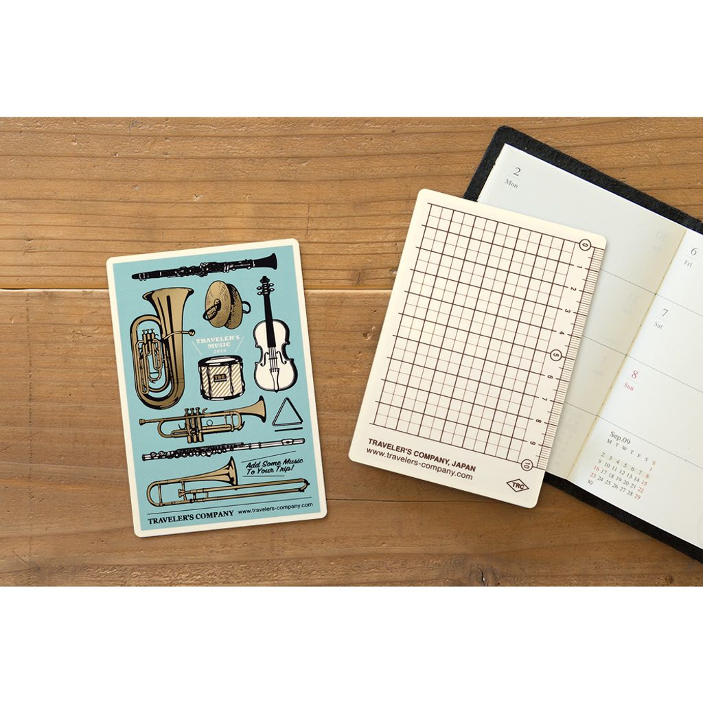 Co by byl Traveler's Notebook bez každoroční podložky na psaní. Ta na rok 2019 má za téma hudbu. Kromě psaní vestoje poslouží jako stylová záložka či pravítko - na rubu najdete předtištěný metr.