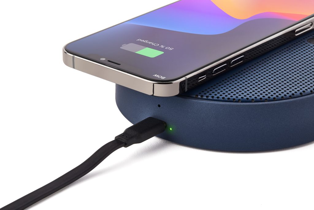 - Reproduktor, mikrofon a bezdrátová nabíječka v jednom