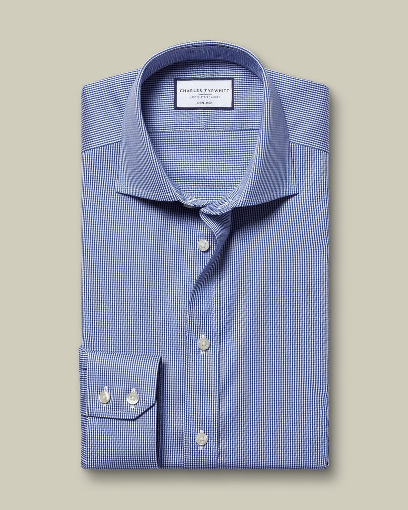Charles Tyrwhitt Spread Collar Puppytooth Shirt — Royal Blue Extra Slim fit