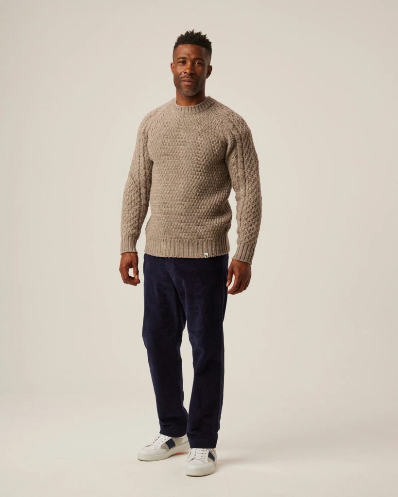 Ač si to můžeme myslet, úpletové vzory na svetrech nejsou jen pro okrasu. Určité vzory jinak uchovávají teplo k tělu, a konkrétně tento vzor, basket & cable knit, uchovává teplo skvěle. Tento kousek je proto určen už na chladnější měsíce, kdy se silnější vrstva prostě hodí.