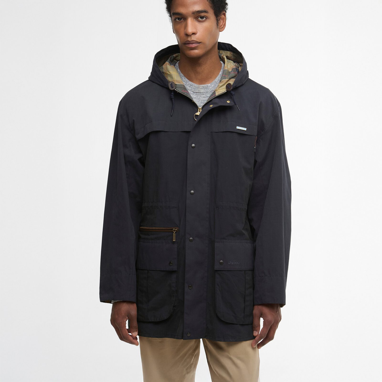 Bunda Durham je o něco delší a terénnější sourozenec bundy Bedale, původně byl navržen jako pracovní/workwearová bunda s kapucí. Nová její verze v edici Icons přebírá původní siluetu a rozložení, ale voskovanou bavlnu vyměnila za všestrannější bavlněný mix s broušeným povrchem. Pevná kapuce je podšitá tartanem, který je decentně vidět při nasazení.