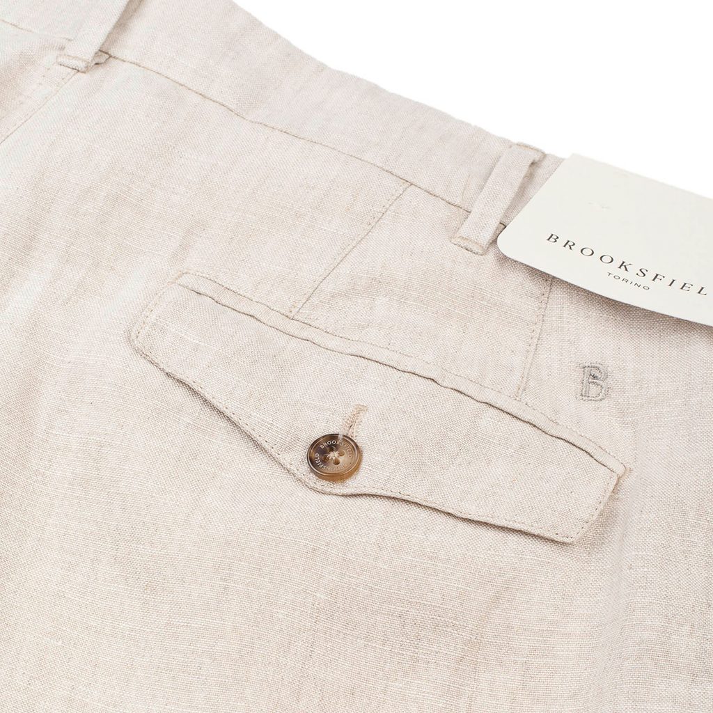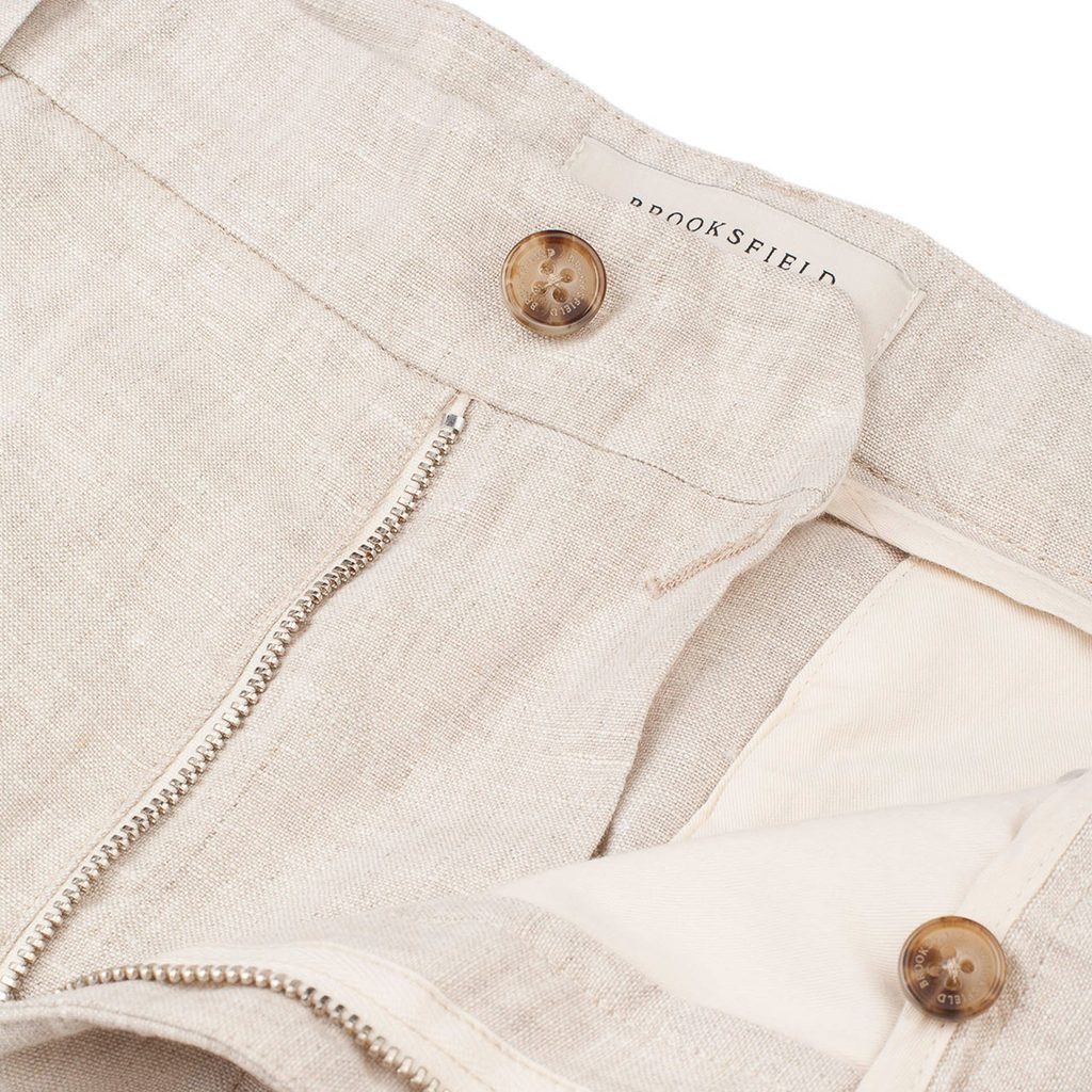 Brooksfield Pleated Linen Trousers — Off-White