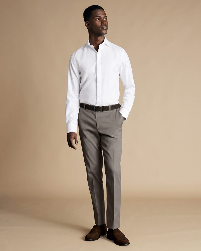 Charles Tyrwhitt Smart Stretch Texture Pants — Mocha Classic fit