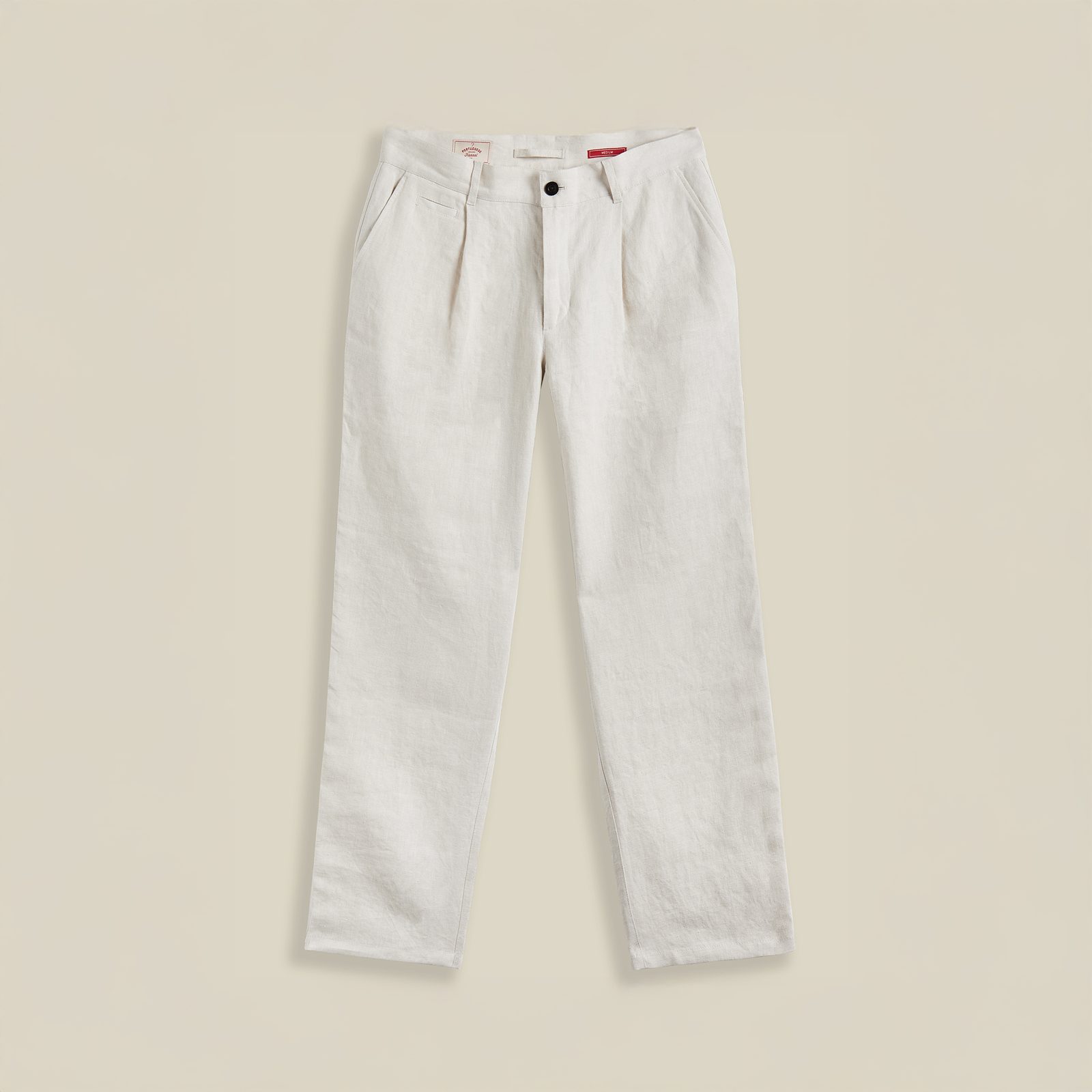 V létě jak v nebíčku s lněnými kalhotami od Portuguese Flannel. Díky stoprocentnímu lnu jsou skvěle dýchatelné, díky jednomu (krát dva!) sámku také značně elegantní. Držte se jich: mají klasická očka na pásek a dvě dvojice kapes, takže nejde jen o výstavní kus.