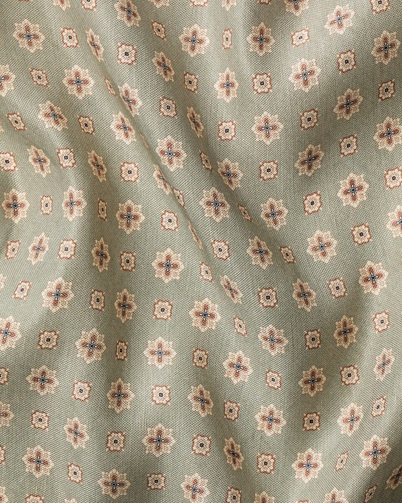 Už na první dotek prémiový kapesníček ze směsi lnu a hedvábí, vhodný nejen do letních sak, který je ke všemu ještě vyzdoben překrásným geometrickým vzorem.