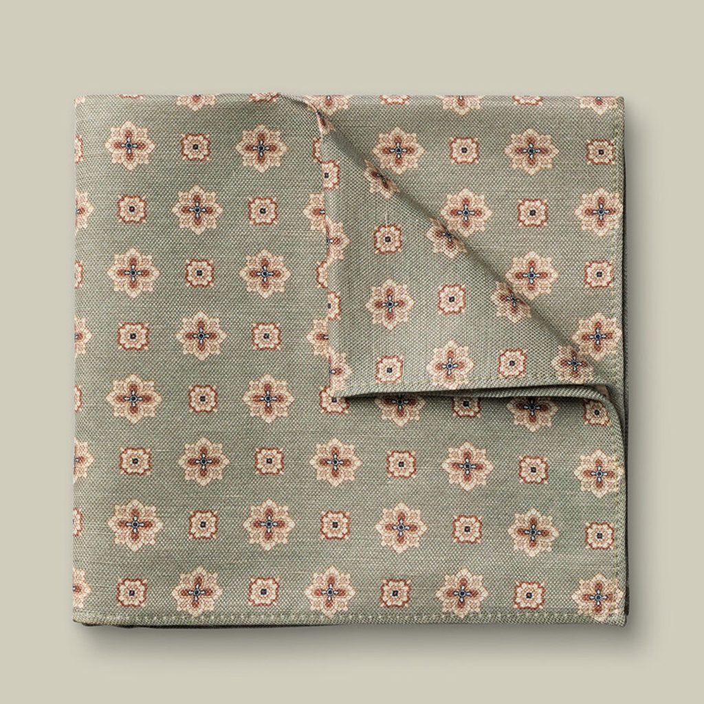 Charles Tyrwhitt Linen/Silk Geo Print Pocket Square — Mid Green