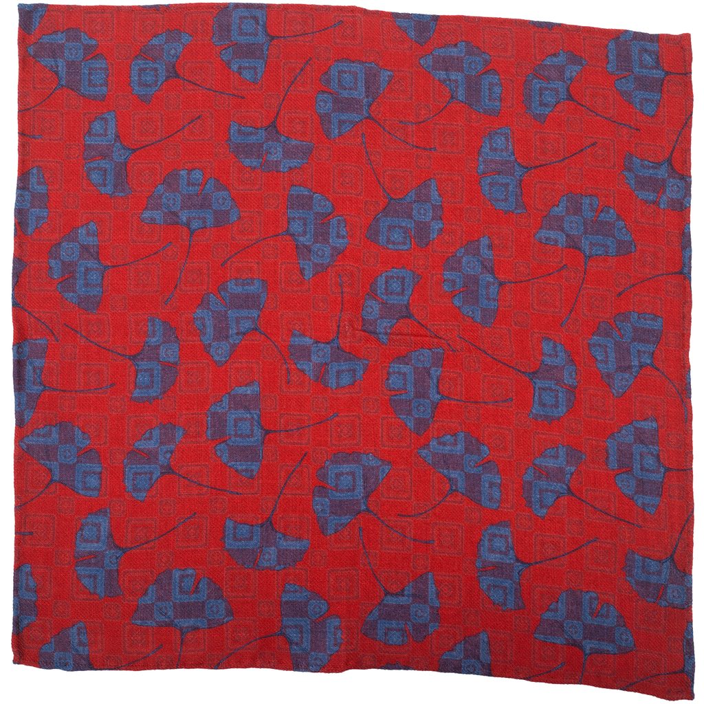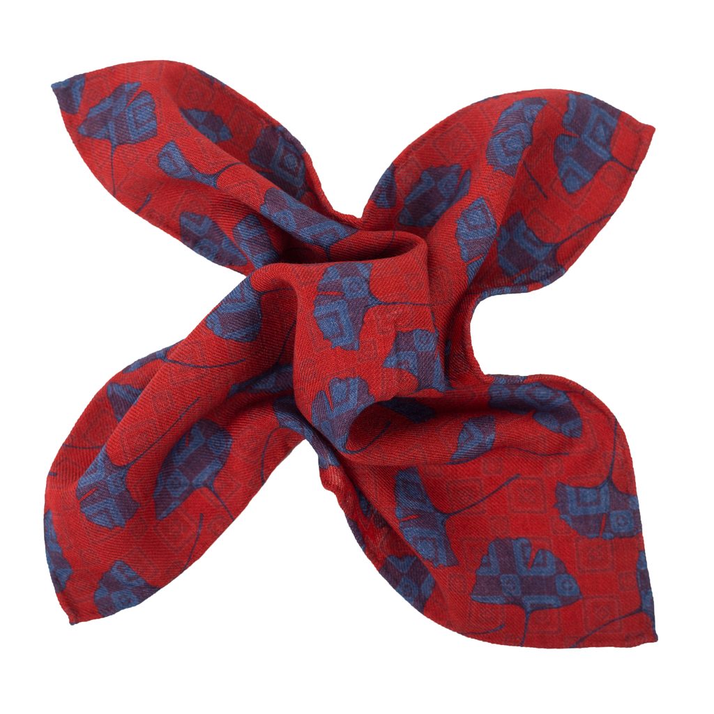 Oboustranný červený kapesníček s modrými květy a listy jinanu John & Paul