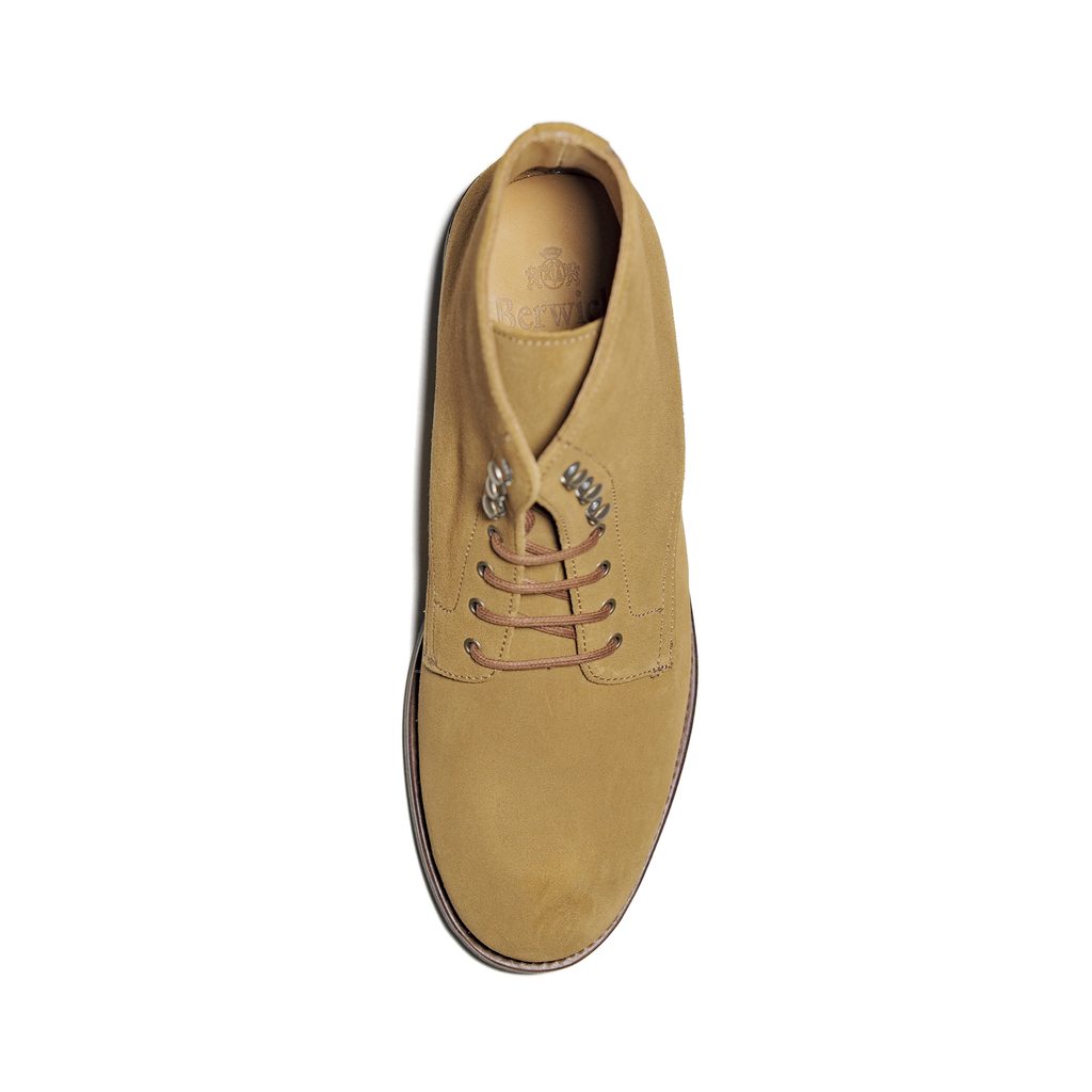 Tyto robustní kotníkové boty značky Berwick spojují poctivé řemeslo, odolnost a univerzální styl. Vyrobené z prémiové broušené kůže v pískovém odstínu, postupně získávají přirozenou patinu a charakter. Díky rámové Goodyear Welt konstrukci a podrážce Vibram poskytují mimořádnou trvanlivost, stabilitu a pohodlí i při celodenním nošení.