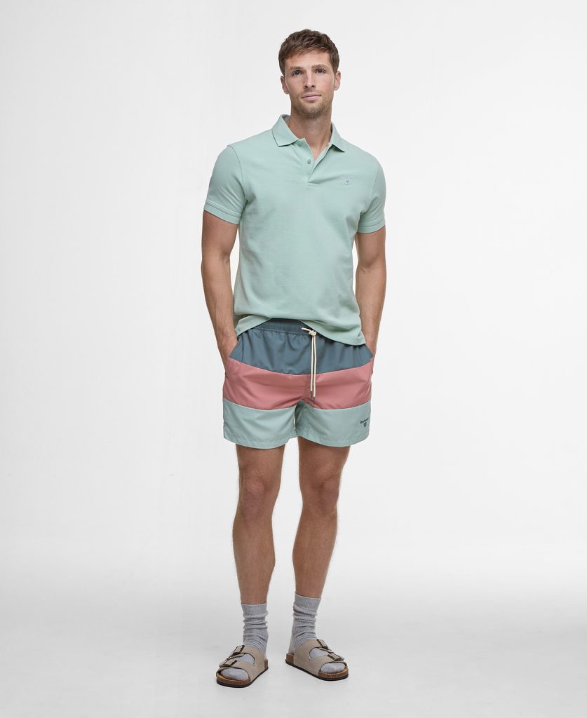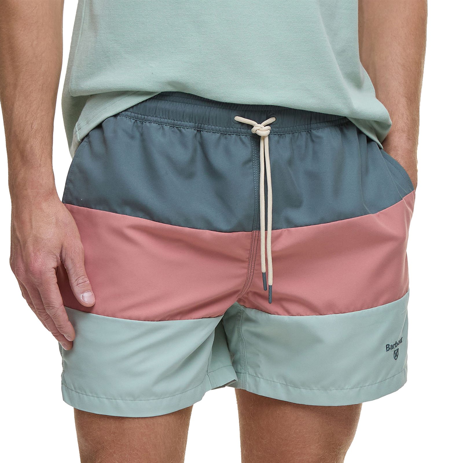 Tahle trikolóra své místo ještě na žádné vlajce nemá – může tak žádat o politický azyl ve Vaší skříni. Plavky značky Barbour v klasické konstrukci (bermudy, dvojice bočních a jedny zadní kapsy) jsou osvěžující díky pastelové paletě. O zbytek osvěžení se postará voda.