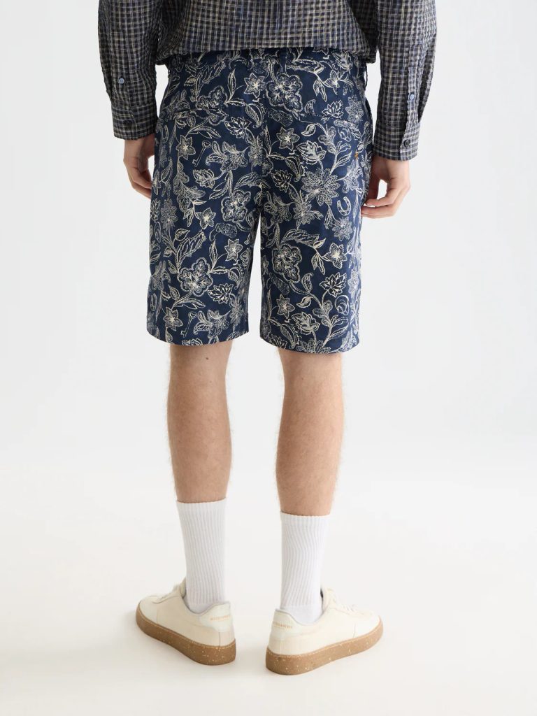 Naopak, na pánské šortky střihu chinos kalhot s celoplošným florálním potiskem od moderní nizozemské značky Scotch & Soda si může troufnout každý chlap. Obzvláště v létě by měl; je totiž vyrobeno ze 100% bavlny (vyjma 3 obligátních procent elastanu pro pohodlí chůze), a čistě organický materiál je v horku vždycky lepší než syntetika.