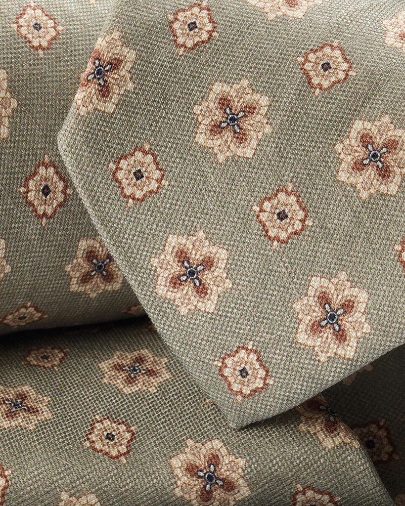 Charles Tyrwhitt Linen/Silk Print Tie — Mid Green