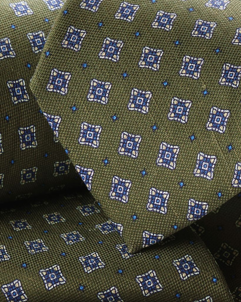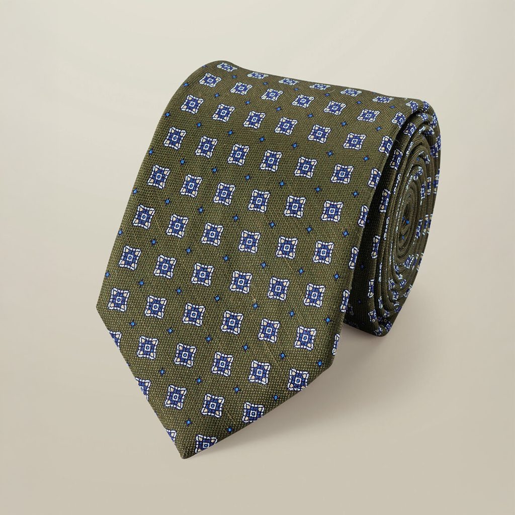 Charles Tyrwhitt Linen/Silk Print Tie — Moss Green
