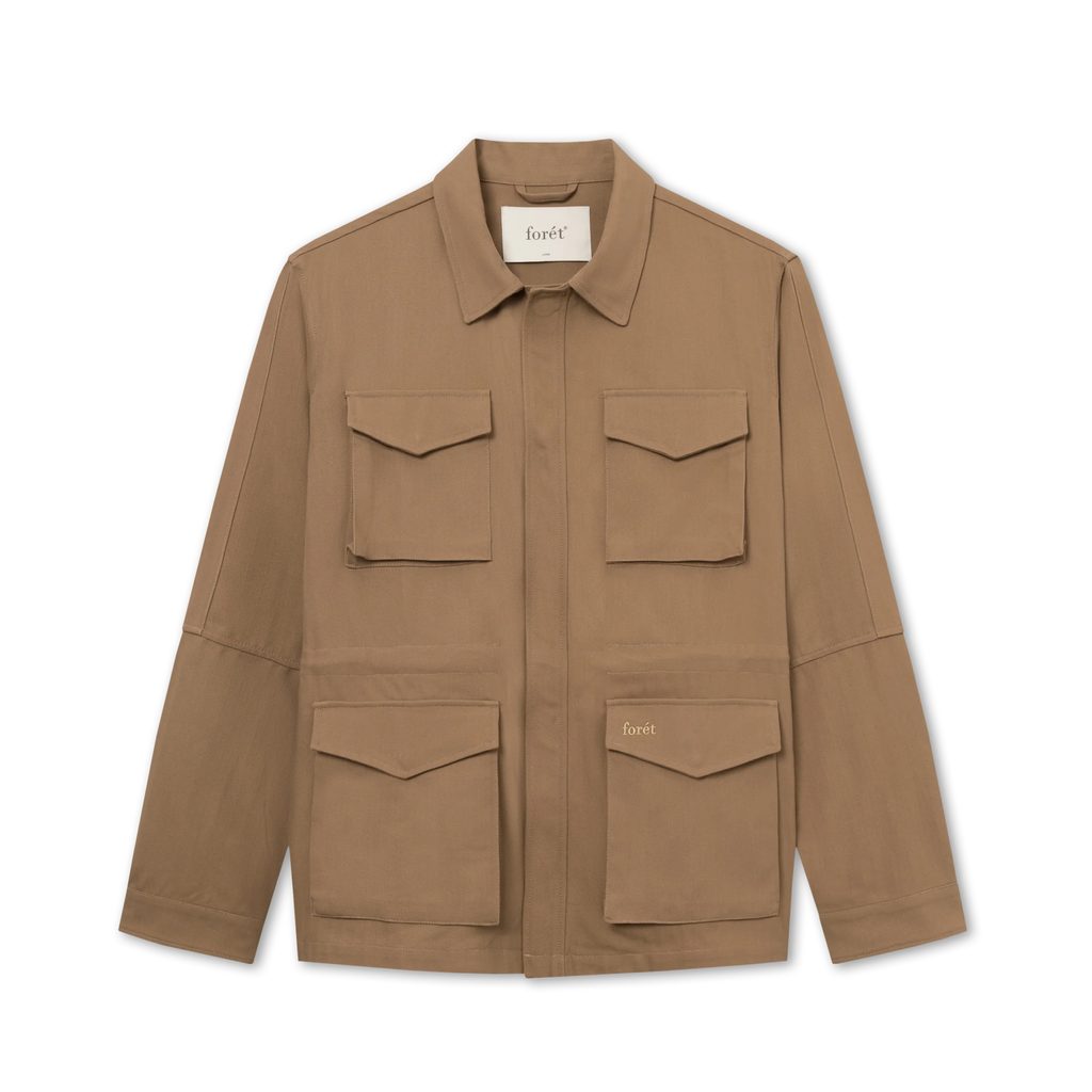 Stroze navržená bunda inspirovaná klasickým workwearem. Od něj však dostala několik upgradů: nejpatrnější je fišgrétová (rybí kost) struktura bavlněné látky, která dodává odolnost i krásu.