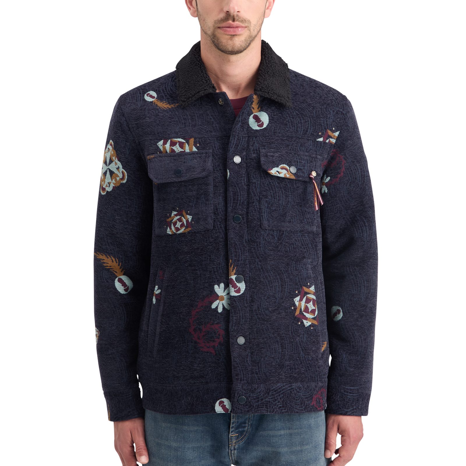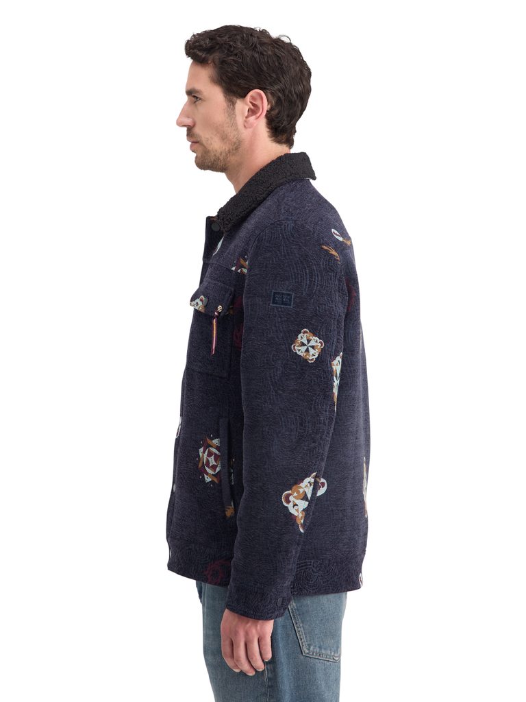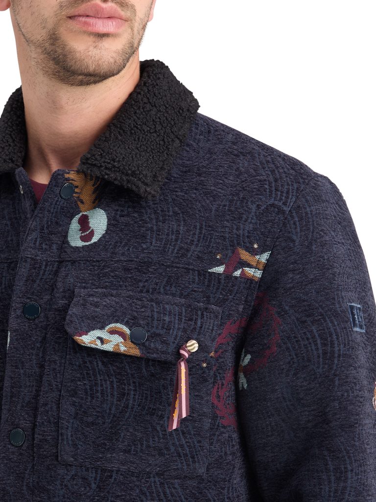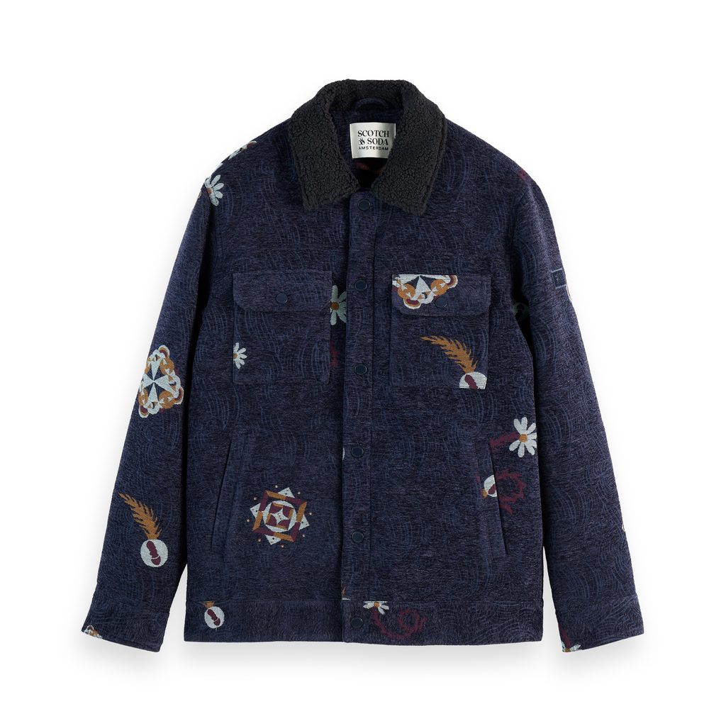 Výrazné vzory je něco, v čem nizozemské módní studio Scotch & Soda bez debat exceluje. Vzor na této workwearové bundě – zvané trucker, jedná se o specifický podtyp – je utkaný žakárovou metodou (byť ne úplně tou původní ruční), která v 17. století umožňovala tvorbu daleko komplexnějších vzorů než kdy dříve. Na bundě se tak dočkáte abstraktních tvarů a motivů v barvách světle modré a hnědé.