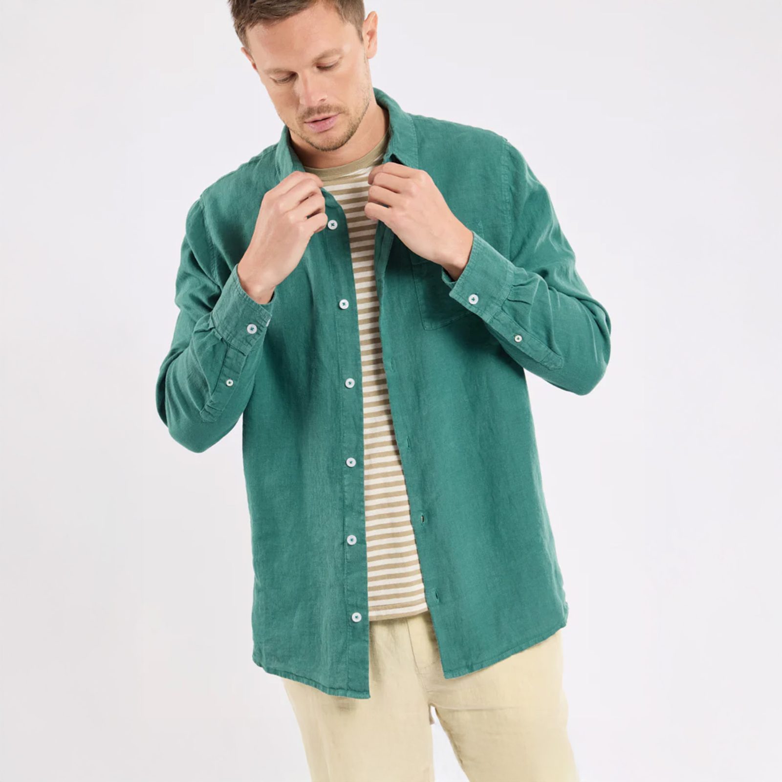 Tato lněná košile z francouzské Bretaně je na léto jak dělaná, a navíc hned zaujme barvou. V nevypasovaném, volném střihu a s dlouhým rukávem je vhodná pro pány, kteří neradi ty nové trendy v košilích (krátký rukáv) a přece si v létě chtějí zachovat chladnou jak hlavu, tak tělo.