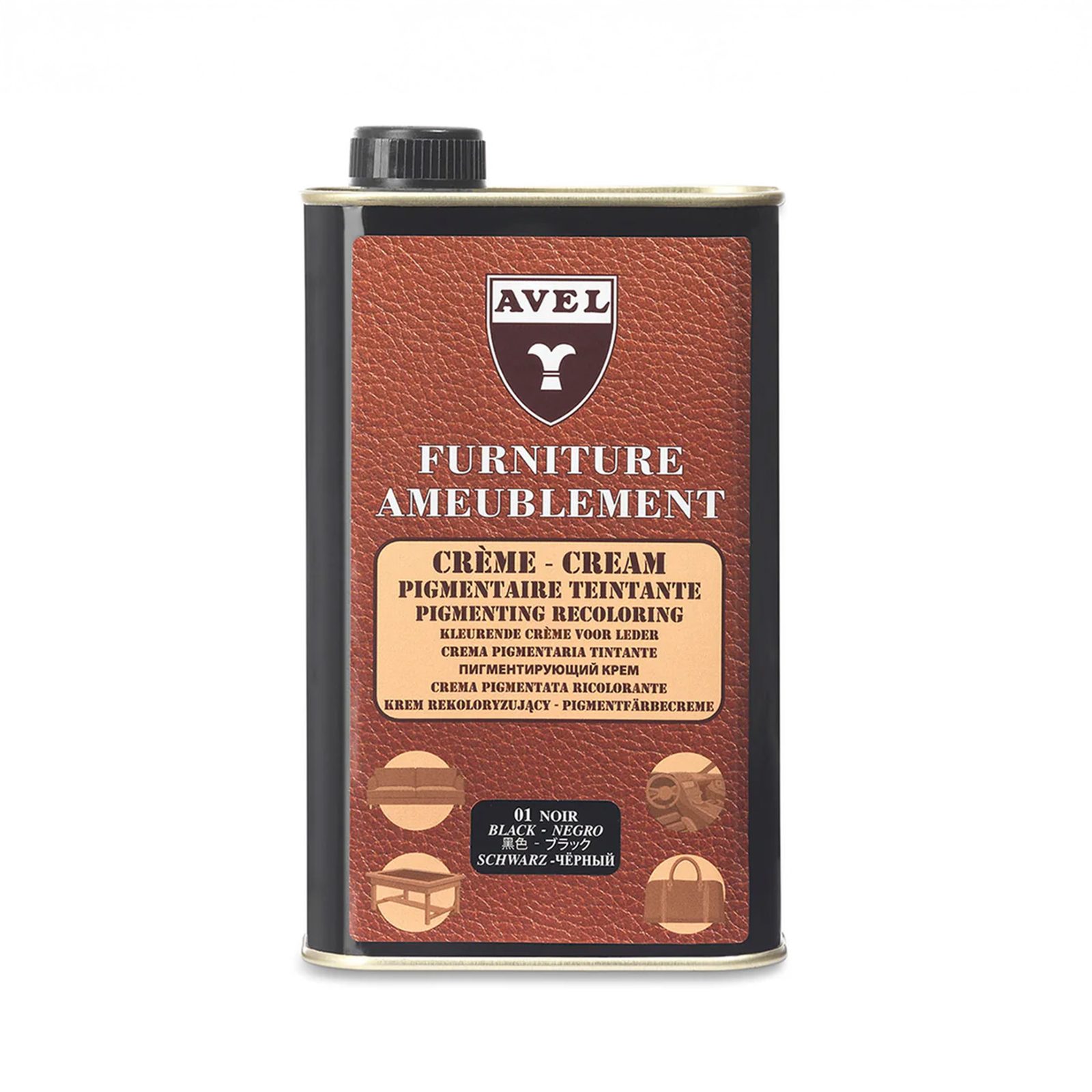 Přebarvovací krém francouzské značky Avel na hladkou kůži. Používá technologii podobnou konečné úpravě kůže v koželužnách, obsažený pigment tak pronikne do povrchu kůže a zakryje odbarvená místa, škrábance i drobné praskliny. Výsledek je takřka srovnatelný s původním továrním finišem.