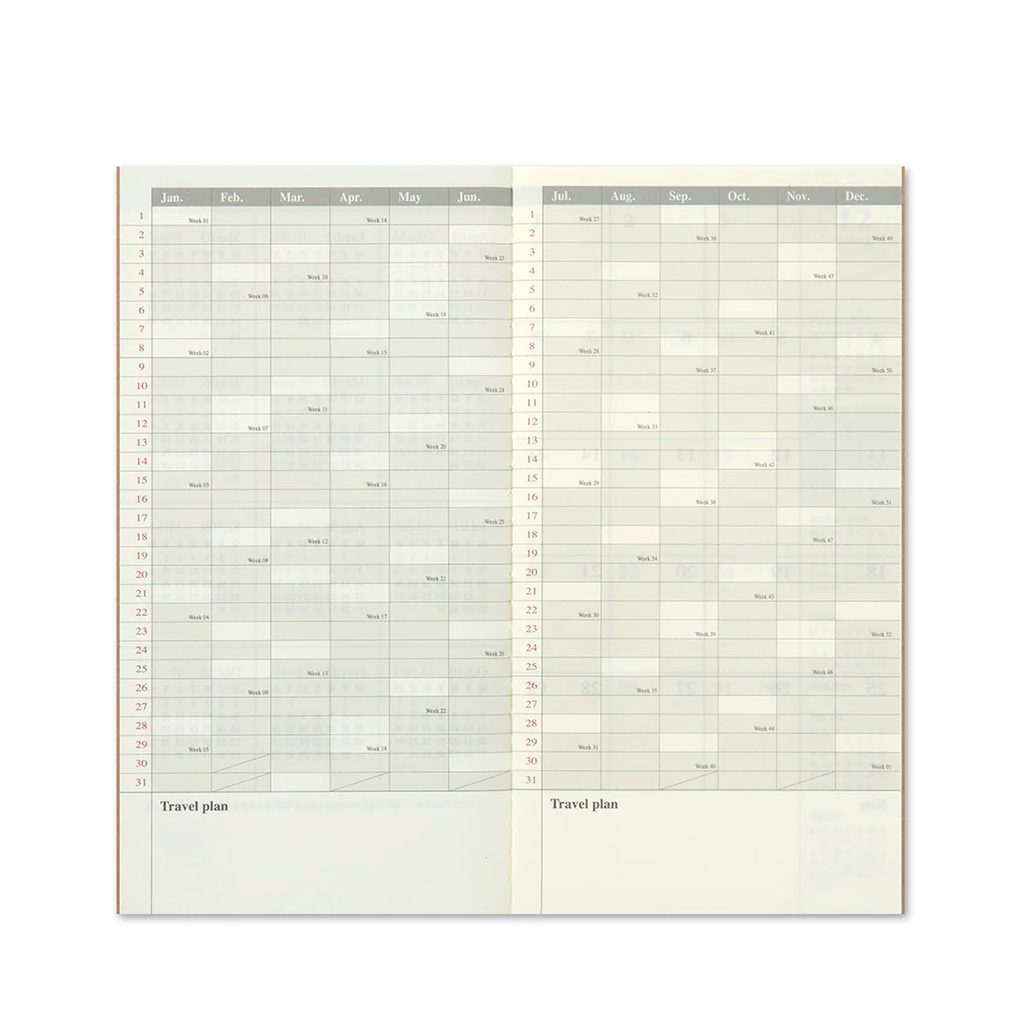 Už na žádný roční plán nebudete moc krátcí – pomůže Vám v tom měsíční plánovač od TRAVELER'S COMPANY. Tenhle je v běžné velikosti a jde jej samozřejmě vložit do jakéhokoli sešitu TRAVELER'S téhož většího formátu.