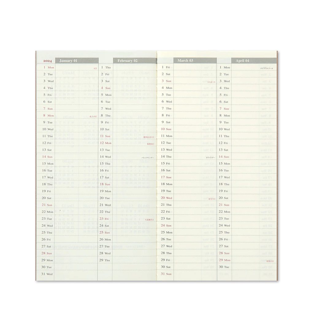 Time management je prostě nutnost – a týdenní diář od TRAVELER'S COMPANY v tom rozhodně pomáhá. Tenhle je v klasické větší velikosti a jde jej samozřejmě vložit do jakéhokoli sešitu TRAVELER'S téhož běžného formátu.