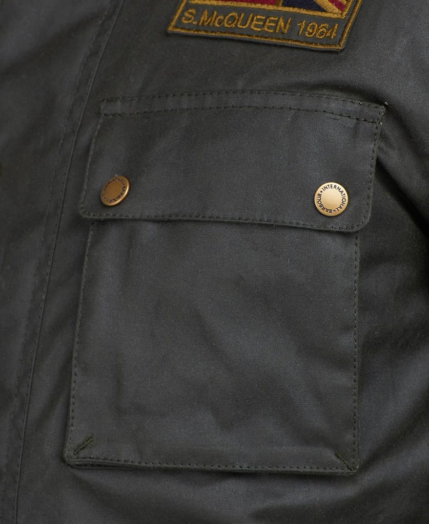 Největší detail na bundě ale nepochybně je spojená americká a britská vlajka, která vzpomíná na legendu skotskoamerického závodníka Stevea McQueena.