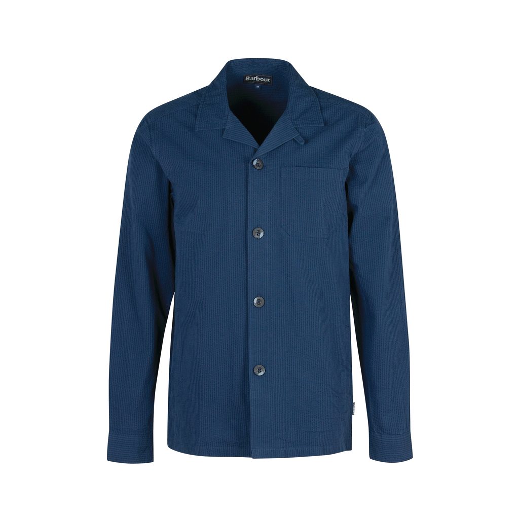 Mírně vyštíhlená bavlněná overshirt Barbour Tenby se zapínáním na knoflíky a plochým (camp collar) límcem ušitá z bavlněného seersuckeru, látky skvělé pro lehčí sezónní vrstvení v měsících s teplejšími dny a chladnějšími večery. Nechybí ani obligátní štítek výrobce na levém boku.