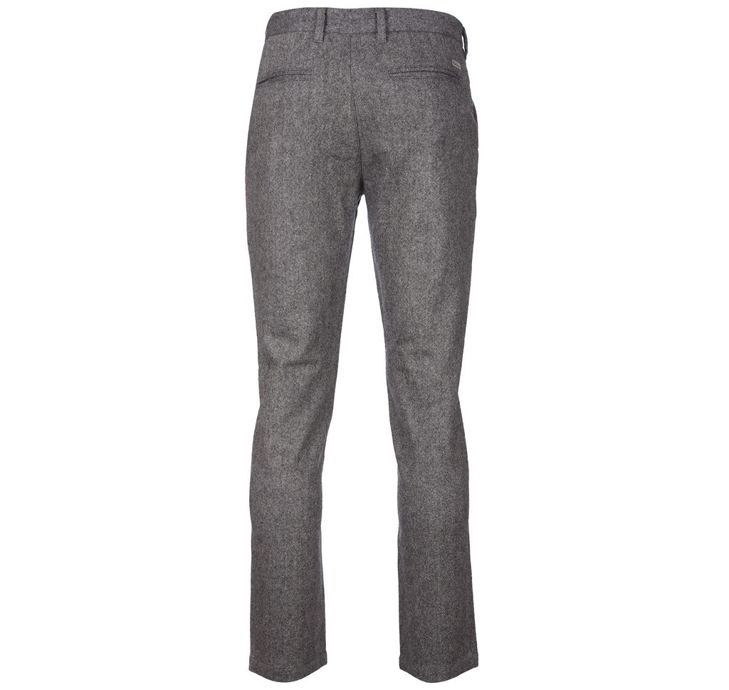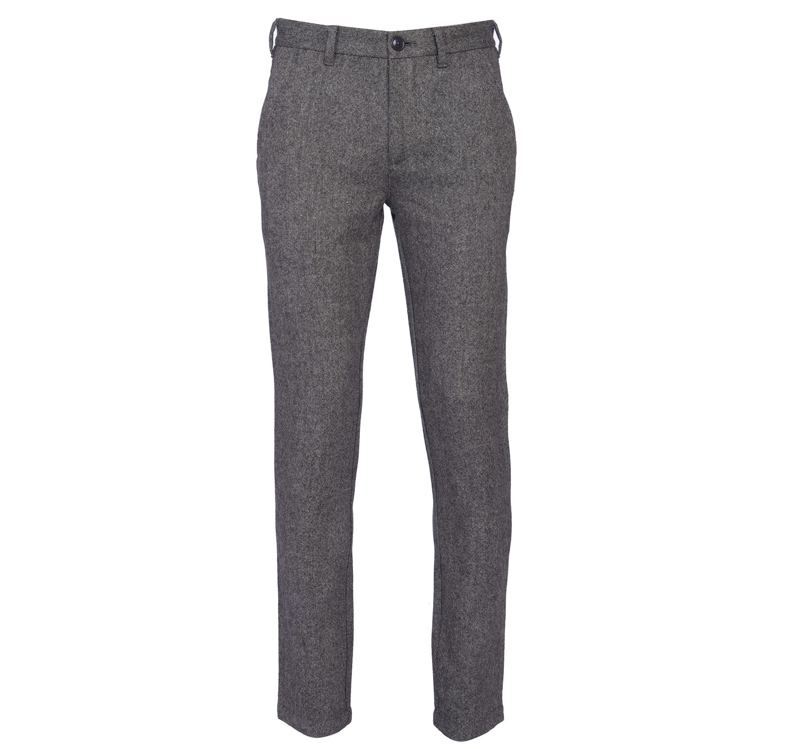 Tmavě šedé kalhoty klasického střihu ušité z vlněné směsi v rámci zimní kolekce Barbour. Zaujmou hlubokou barvou se zajmavou texturou, nejsou příliš vypasované, příjemně padnou, k tomu jsou vybaveny zapínáním na zip, očky na pásek a obvyklým množstvím kapes. Britská kvalita do každého počasí.