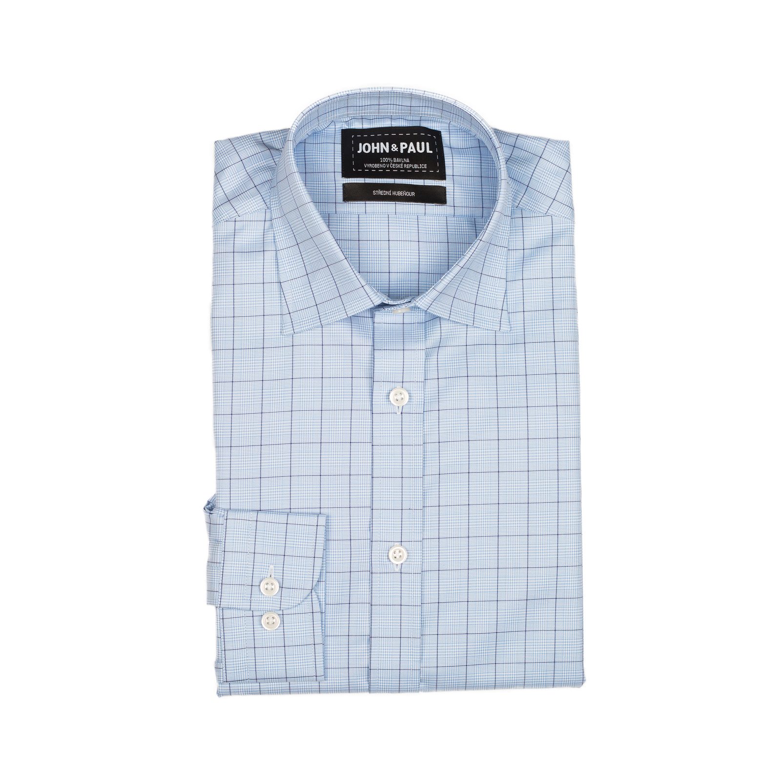Ušitá jako součást naší sezónní kolekce z kvalitní dvojmoskanné bavlny, má klasický límec a manžety na běžné knoflíky.