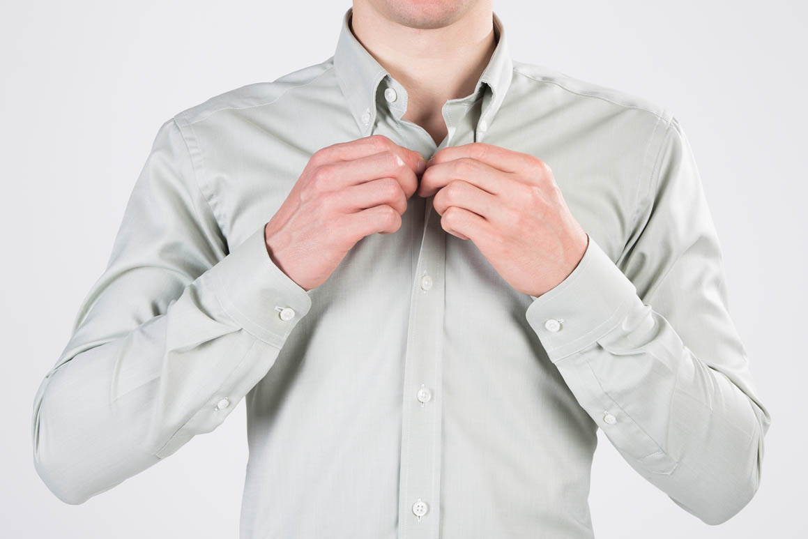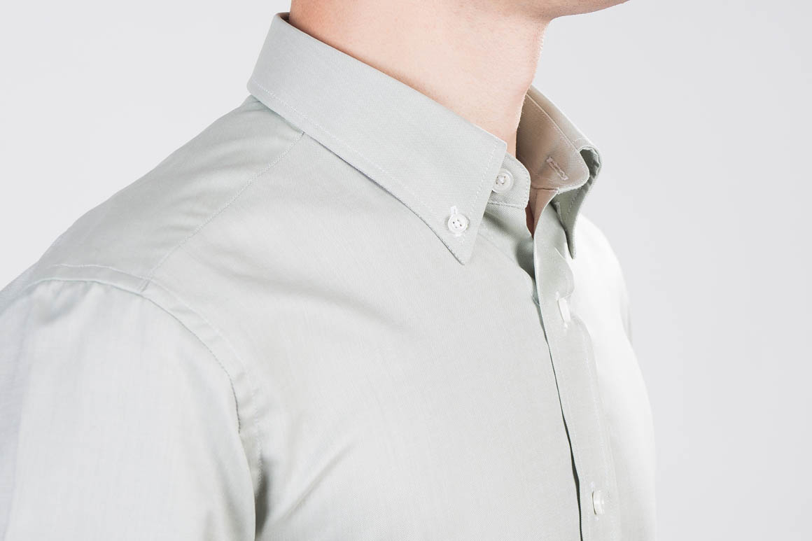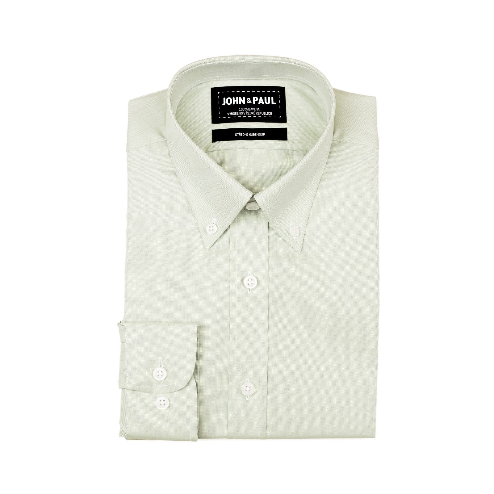 Volnočasová košile jemně zelené barvy s button-down límcem. Vyrobena v České republice z dvojmo skanné bavlny jako součást naší aktuální sezónní kolekce.