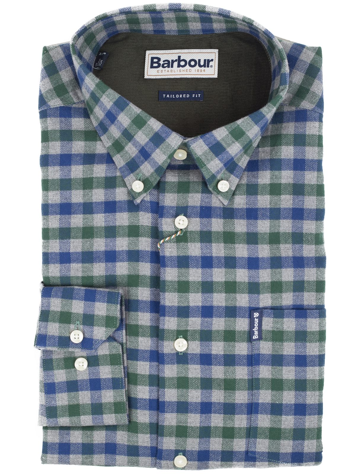 Volnočasová bavlněná košile s modro-šedo-zelenými kostkami a kontrastní rubovou stranou z dílny anglického Barbour. K tomu vyštíhlený střih, měkký propínací (button-down) límec a náprsní kapsička. Uměřeně veselá košile, která sedne jak k chinos, tak k džínům.