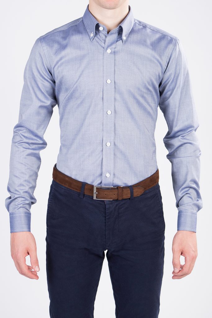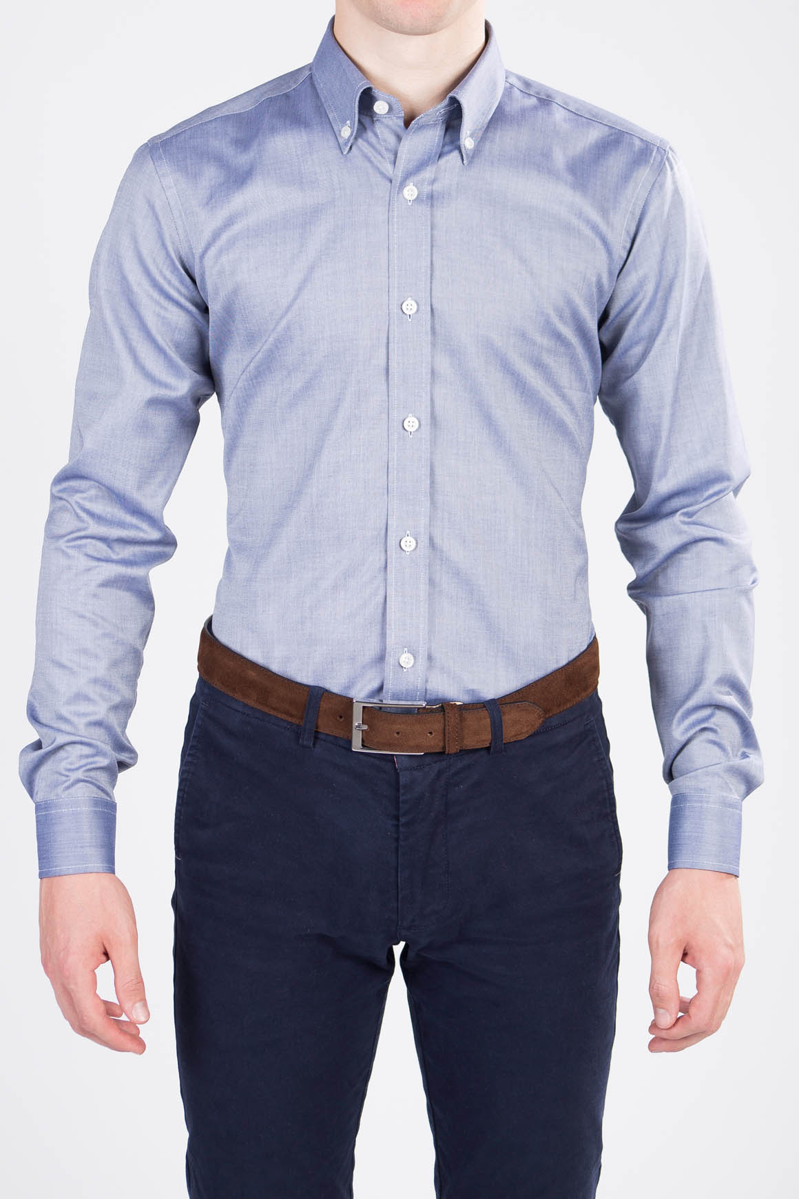 Tmavě modrá košile v hutné oxford vazbě, která zahřeje i v zimě, s méně formálním button-down límcem. Součást naší nejnovější kolekce.