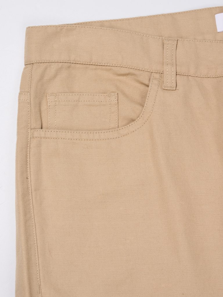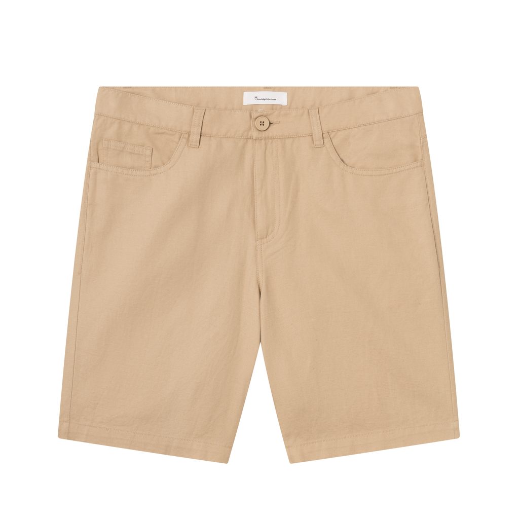 Jednoduché a stylové kraťasy z ekologické dílny by neměly toto léto chybět v žádné skříni. Jsou ušity z organické bavlny a lnu v keprové vazbě. Zde ve světlé "Safari" barvě disponují pěti kapsami a očky na pásek, což z nich činí i velmi praktický kousek.