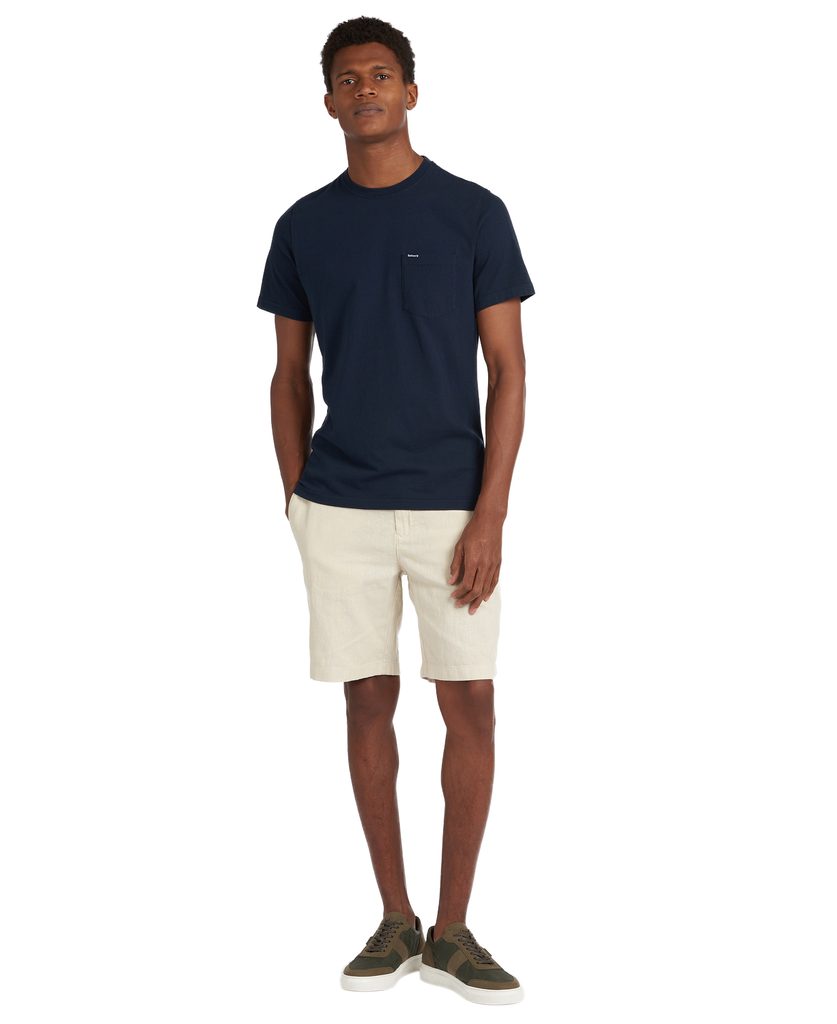 Jednobarevné lněné kraťasy Barbour Linen Mix Shorts - krémově bílé