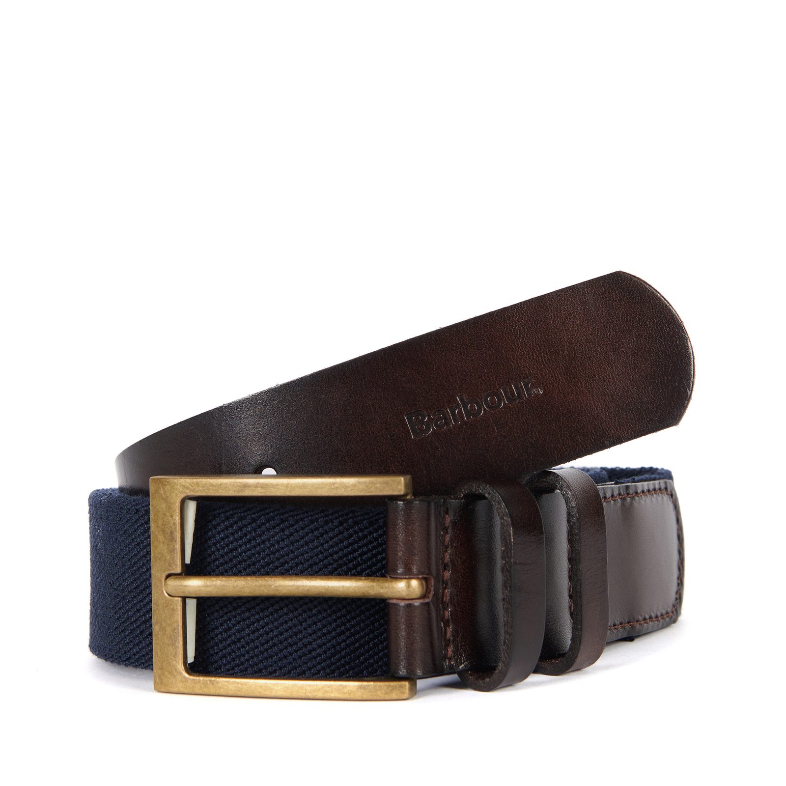 Pásek Barbour Alby ze strečové tkaniny a kůže — Navy