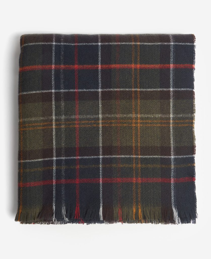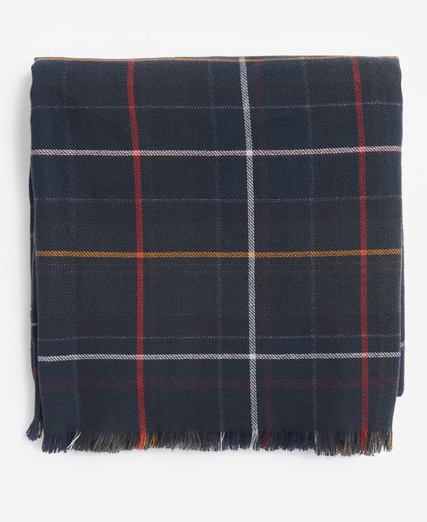 Trochu přehoz, trochu šála. Tenhle kousek ze směsi polyesteru a viskózy, která zaručuje skvělou jemnost, je ale bez debat čistě tartanový. Nechybí třásničky po celé délce okrajů.