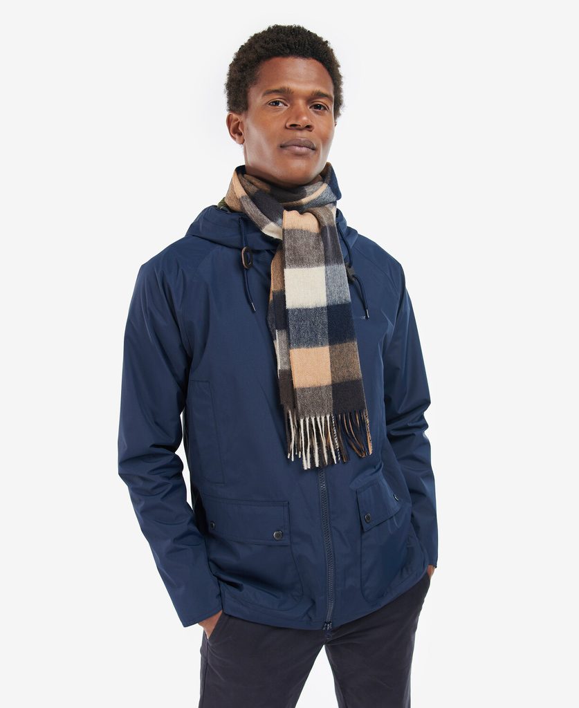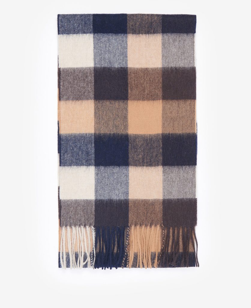 Tohle není tartan, tohle je řádné klasické kostkování. Teplá vlněná šála od skotské legendy Barbour s tradičními hravými třásničkami v příjemných podzimních barvách.