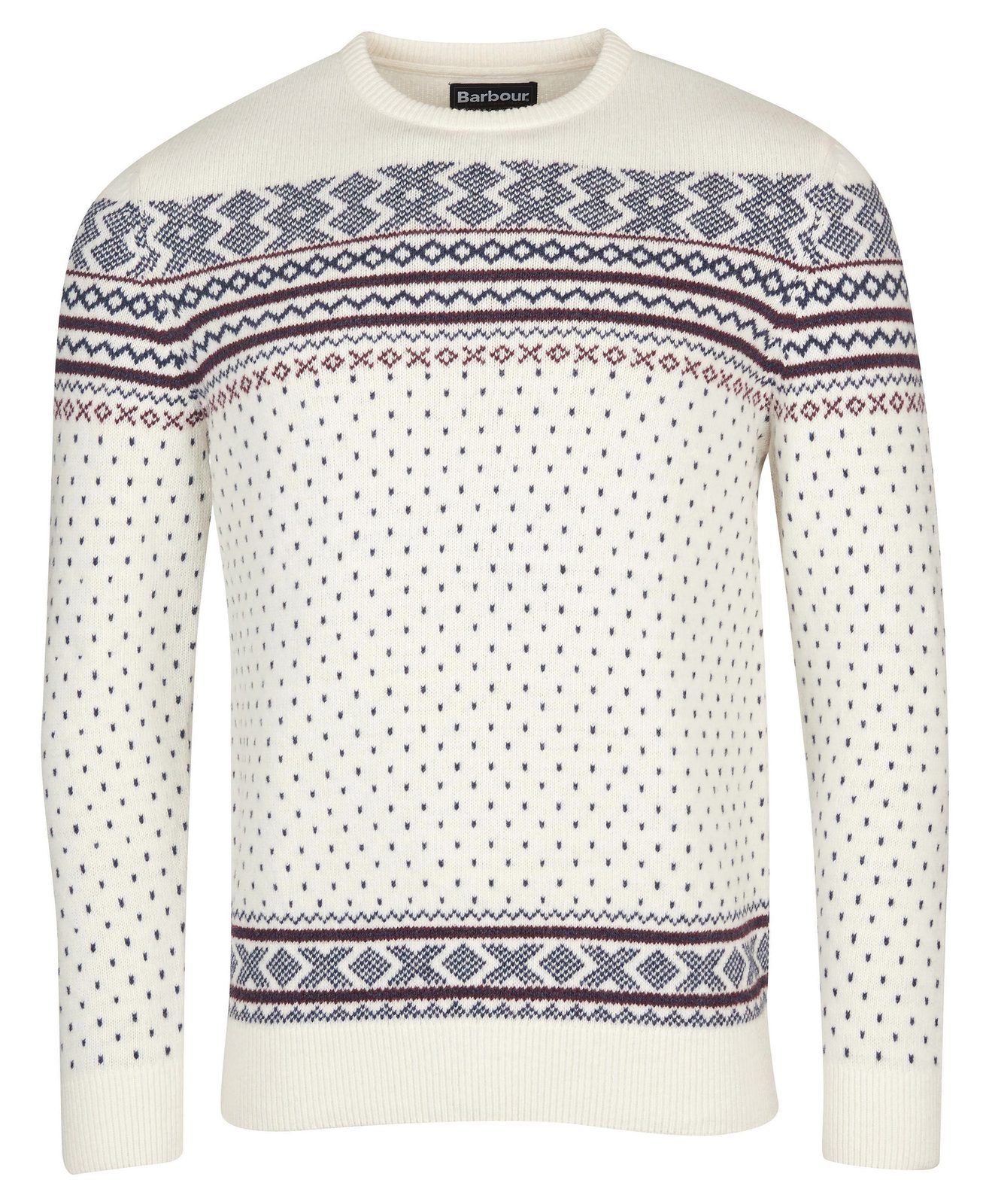 Vlněný svetr Barbour vyvedený v odstínech béžové a ozvláštněný o typický vzor z ostrova Fair. Součást limitované zimní kolekce.