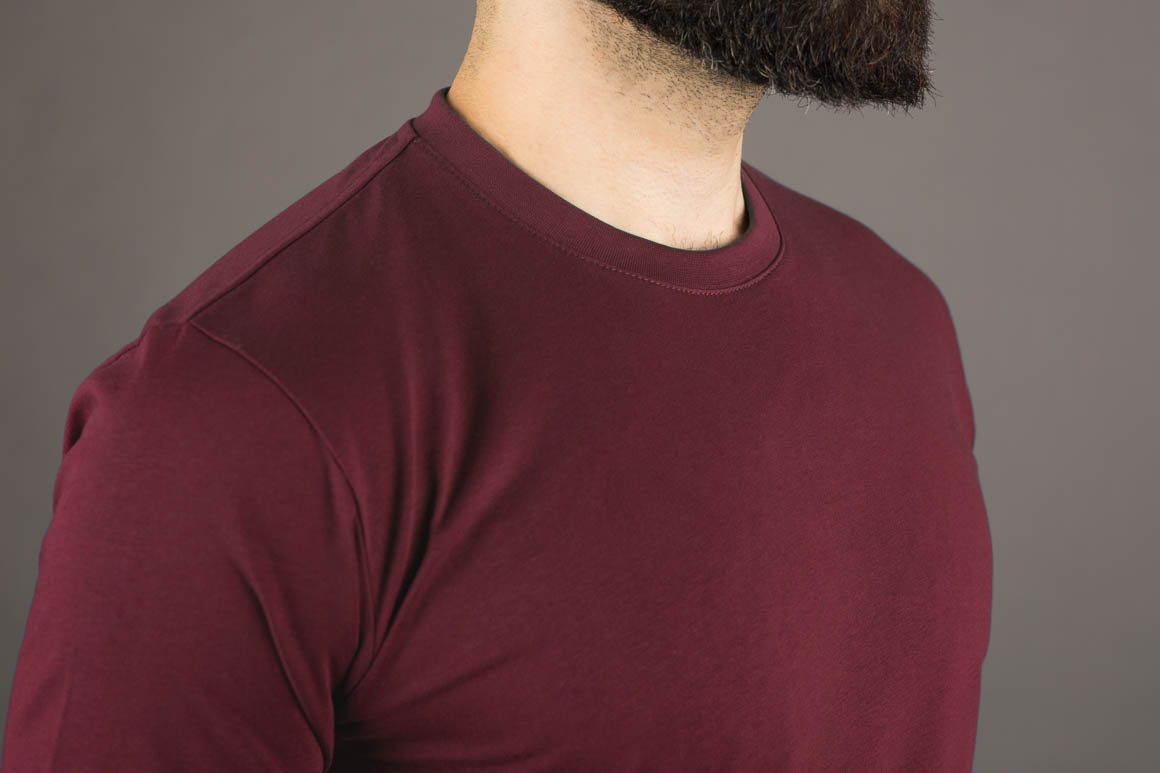 Tričko s potiskem? S tím na nás nechoďte, to je pro kluky. A vy přeci chcete vypadat skvěle, i když zrovna nejste v práci. Proto jsme to nekomplikovali. Vínová barva, klasický kulatý límec a nic víc.