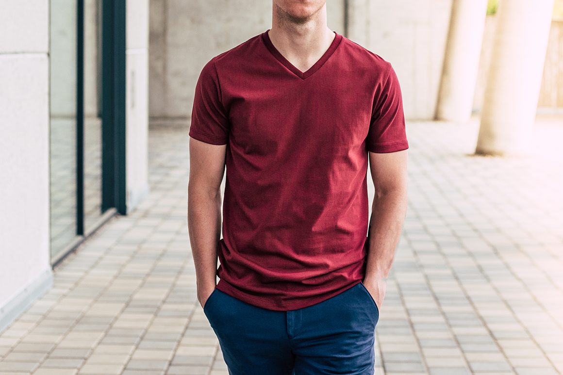 Tričko s potiskem? S tím na nás nechoďte, to je pro kluky. A vy přeci chcete vypadat skvěle, i když zrovna nejste v práci. Proto jsme to nekomplikovali. Vínová barva, límec do V a nic víc.