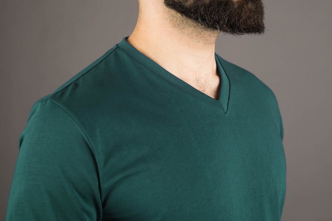 Tričko s potiskem? S tím na nás nechoďte, to je pro kluky. A vy přeci chcete vypadat skvěle, i když zrovna nejste v práci. Proto jsme to nekomplikovali. Zelená barva, límec do V a nic víc.