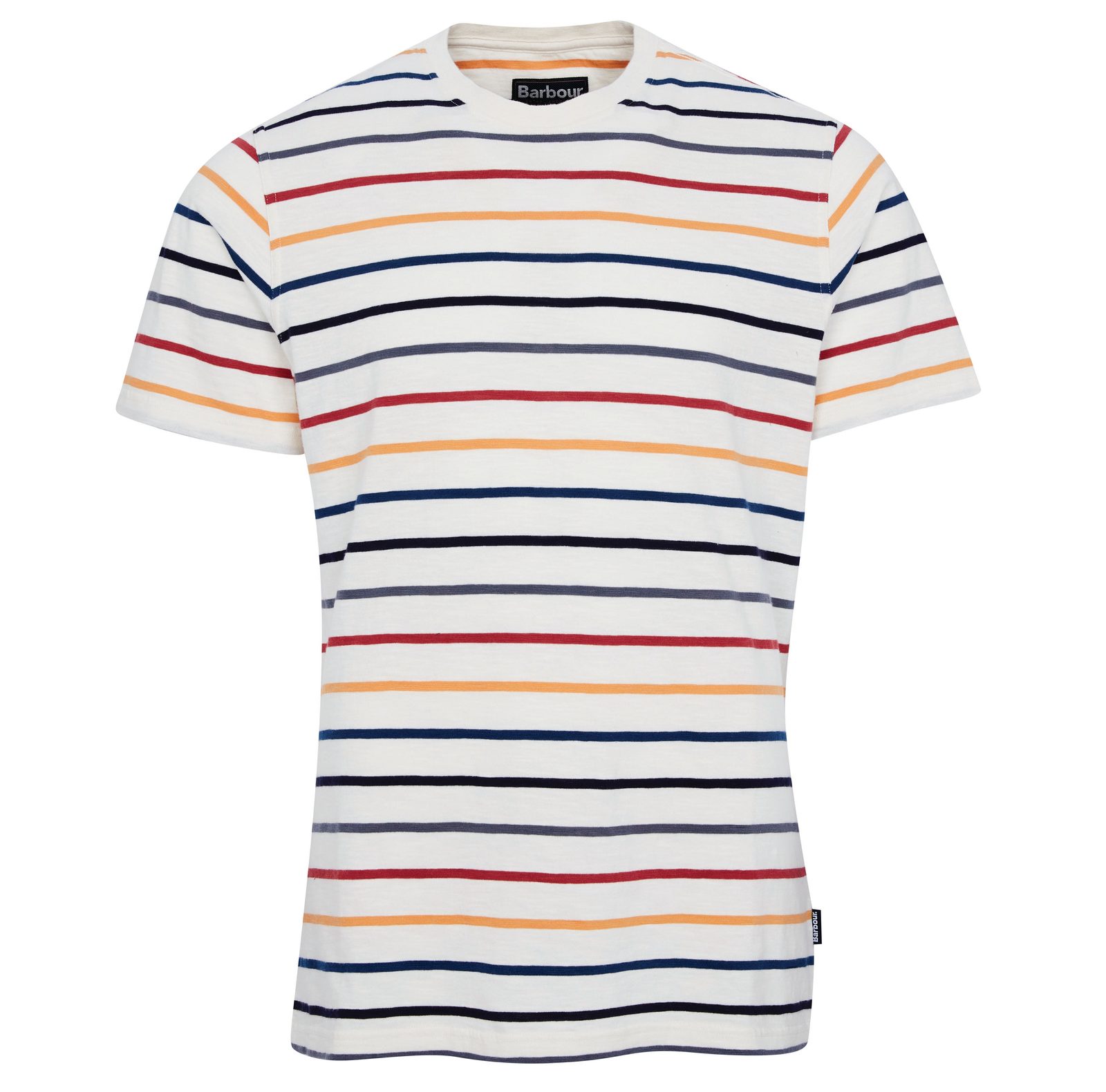 Pestrobarevně pruhované letní tričko Barbour s klasickým volnějším střihem a kulatým límcem.